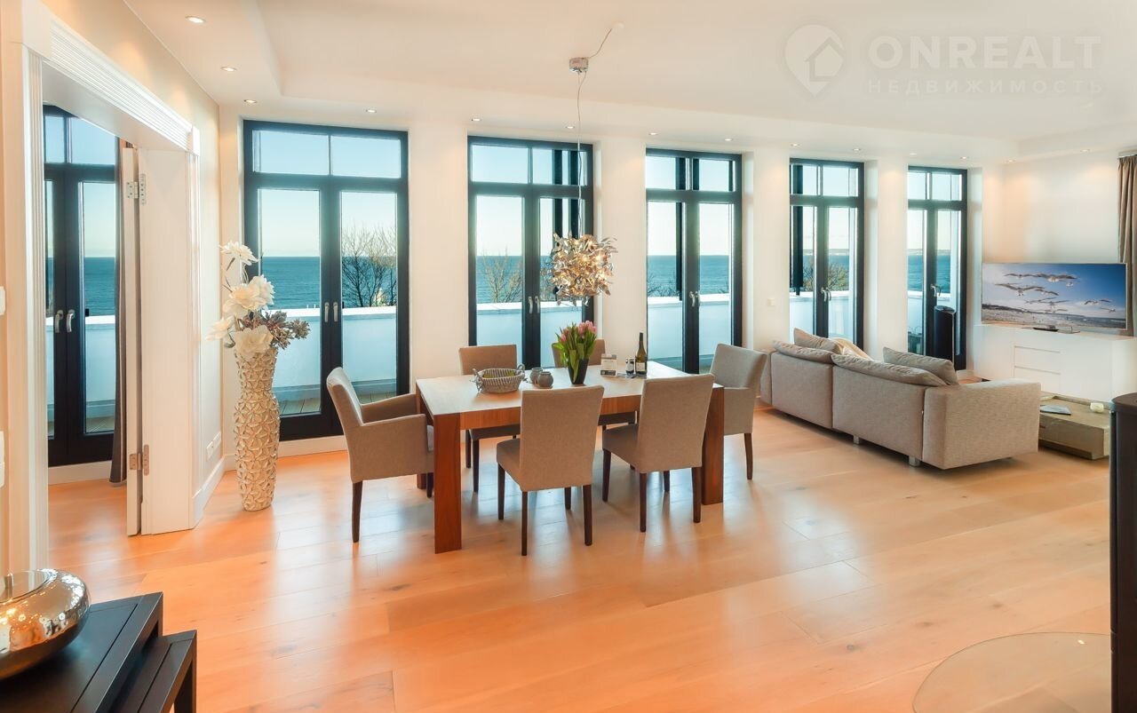 Распланирована в спальню с панорамным видом на море и большую кухню гостиную.