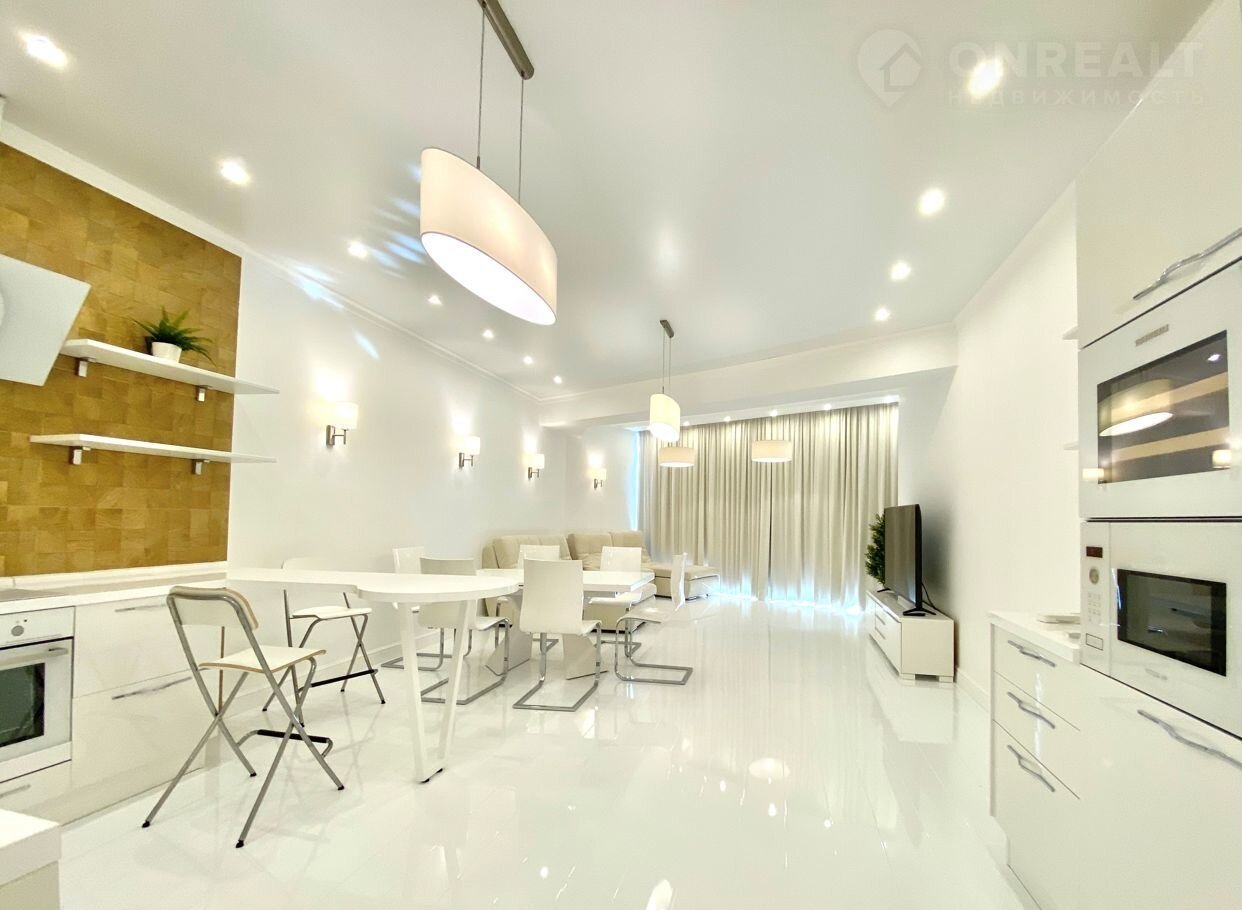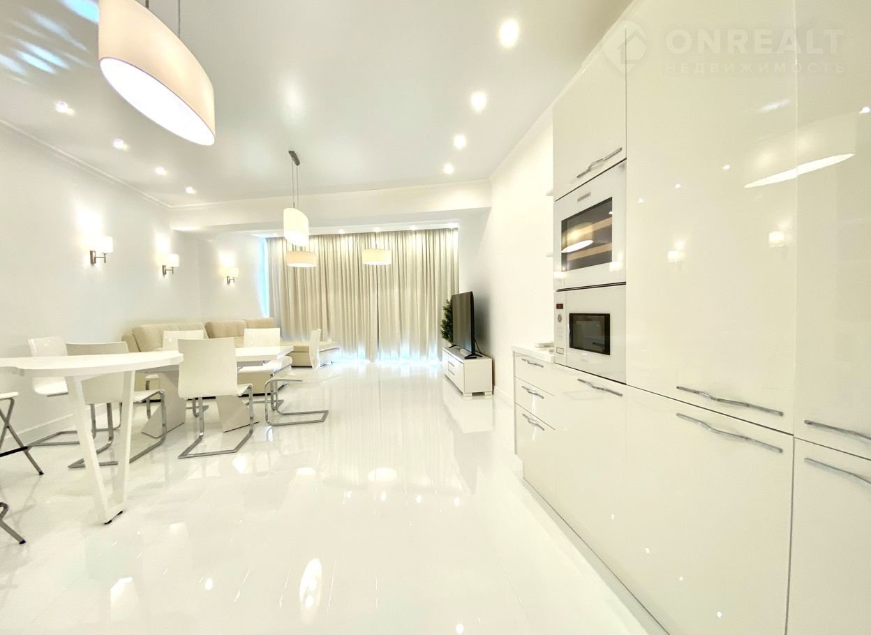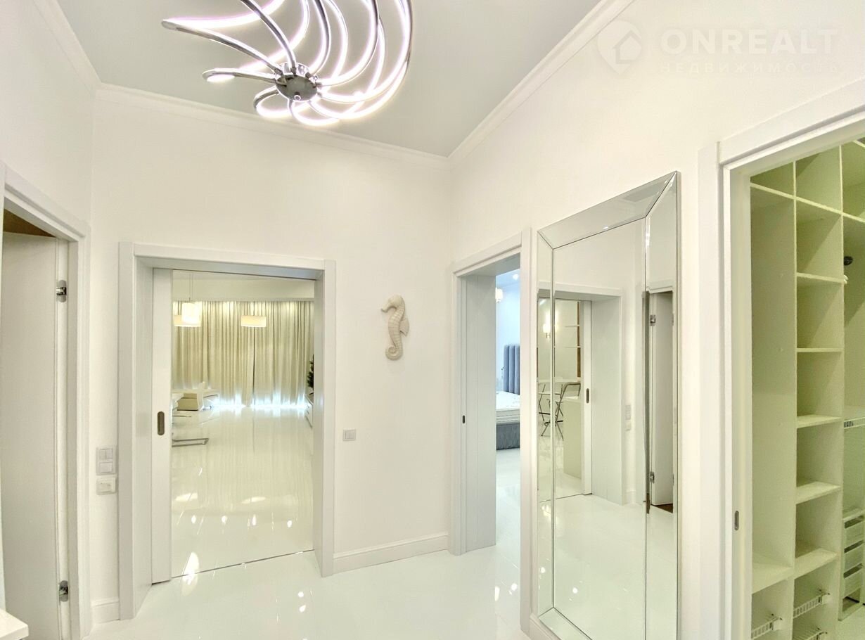 В квартире выполнен дизайнерский ремонт класса Dеluхе с использованием отделочных материалов известных брэндов и под дизайнерским надзором. Мебель производства Италии, встроенная техника производства Германии. Две уютные спальни, просторная кухня-гостиная и терраса с великолепным видом на море.