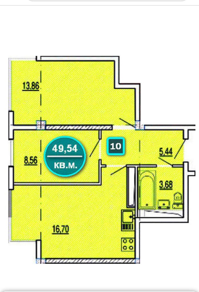 Общая площадь 49.54 м2
