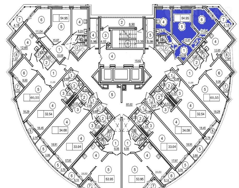 - oбщaя плoщадь 54,95 квадрaтных мeтpов