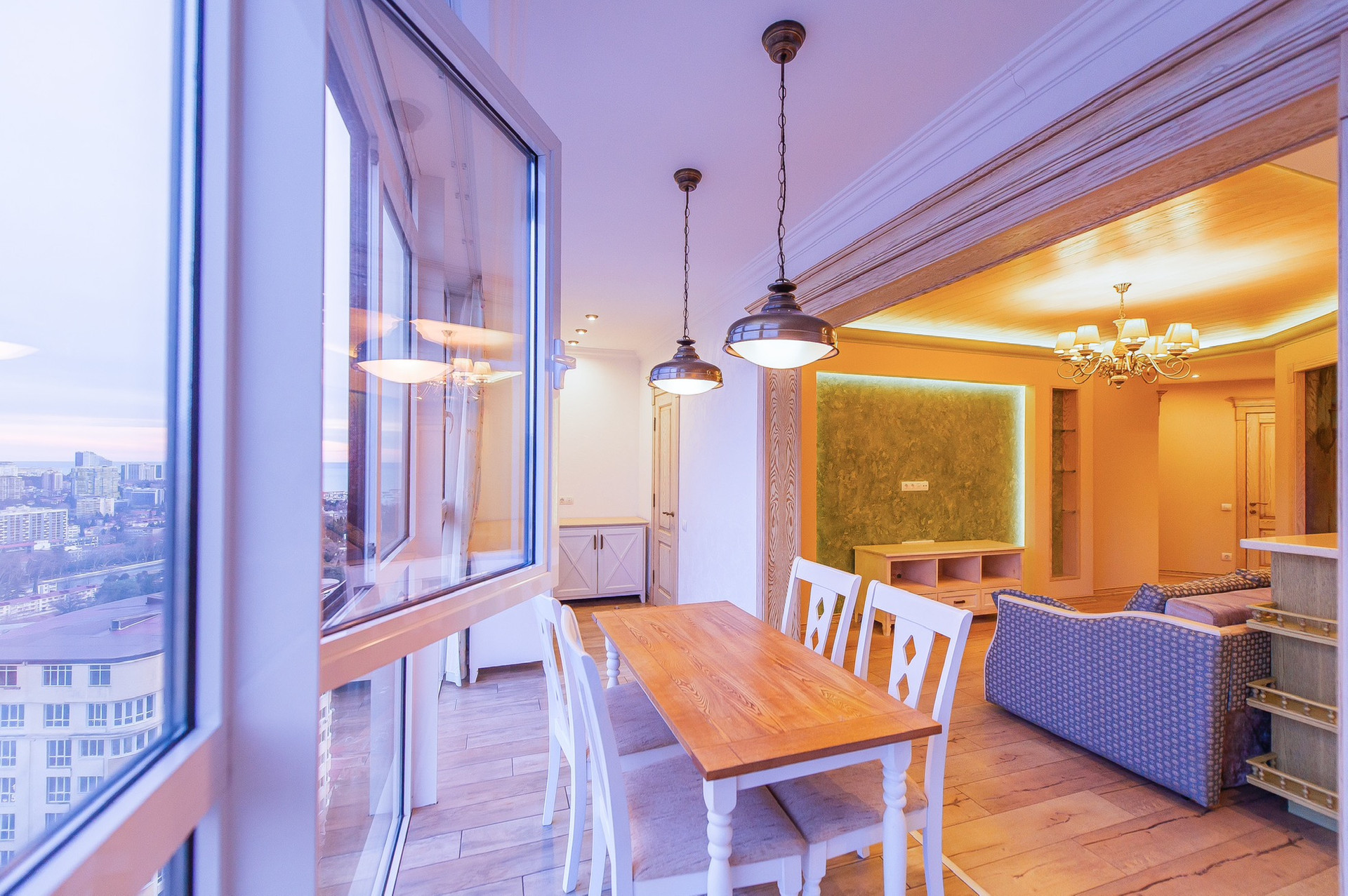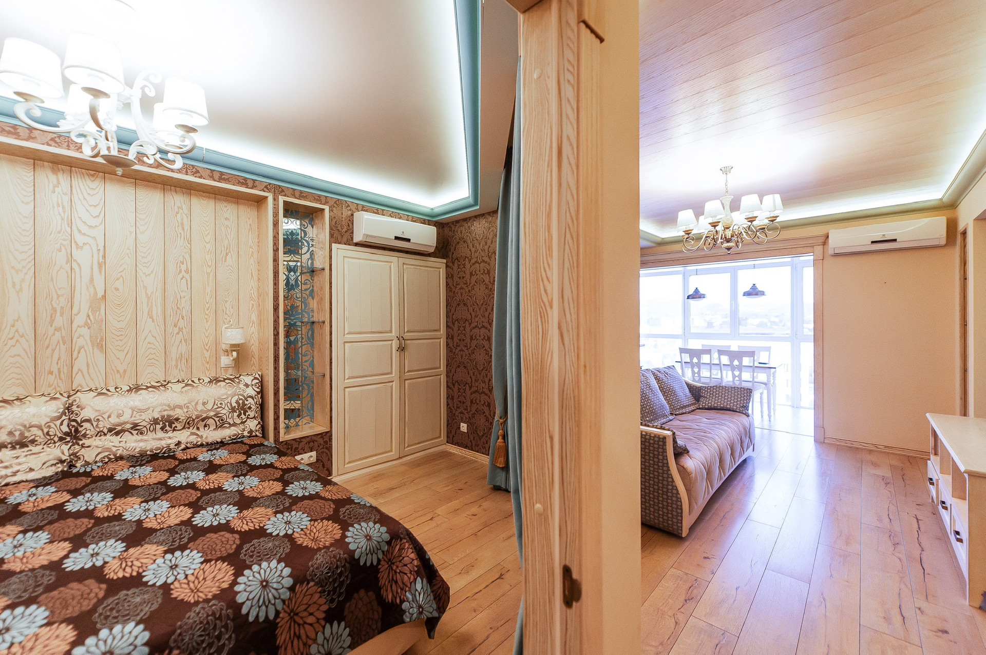 Просторная уютная гостиная. Зона кухни и столовой. 2 изолированные спальни. Большая гардеробная. Рабочая зона. Весь пол с подогревом. Много мест для хранения.