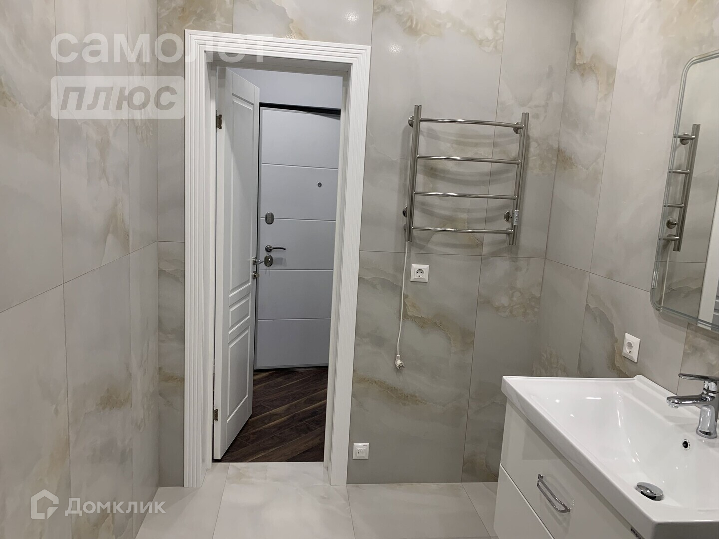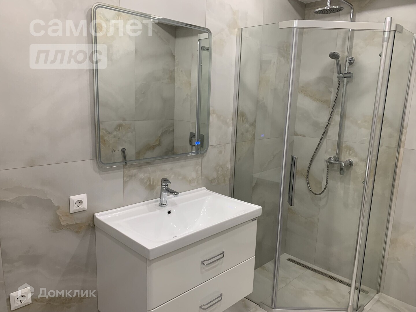 - в ванной кафель/душевая кабина/подвесная раковина с тумбой, инсталляция, зеркало,
