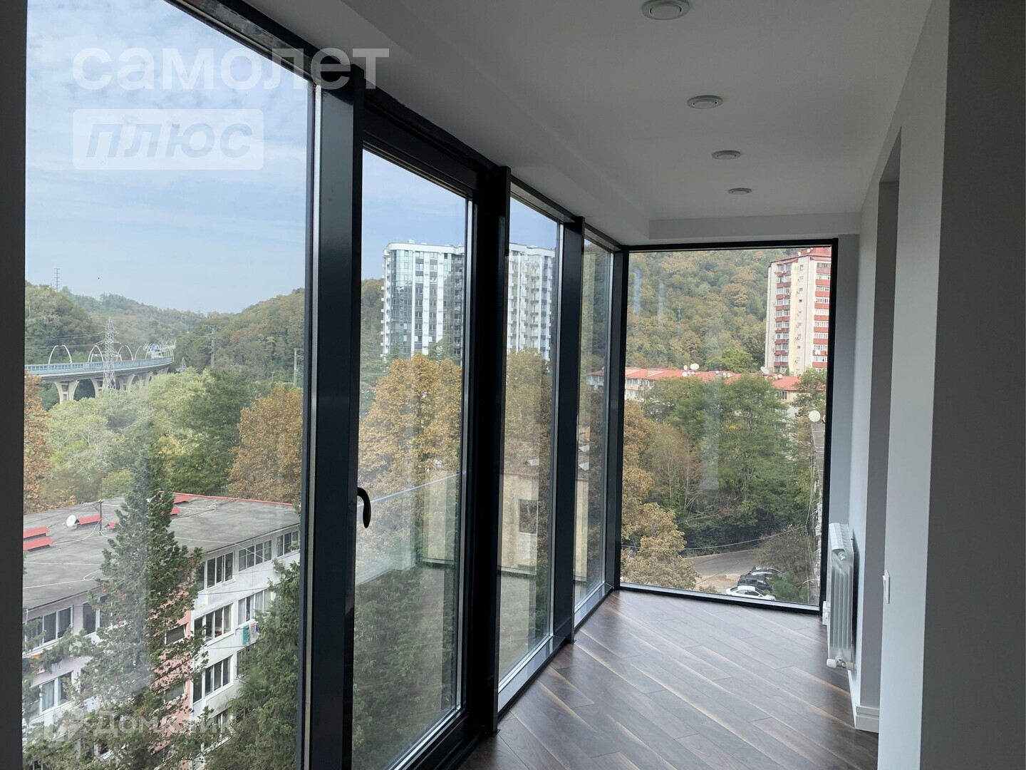 - роскошный вид из окна на город и горы,