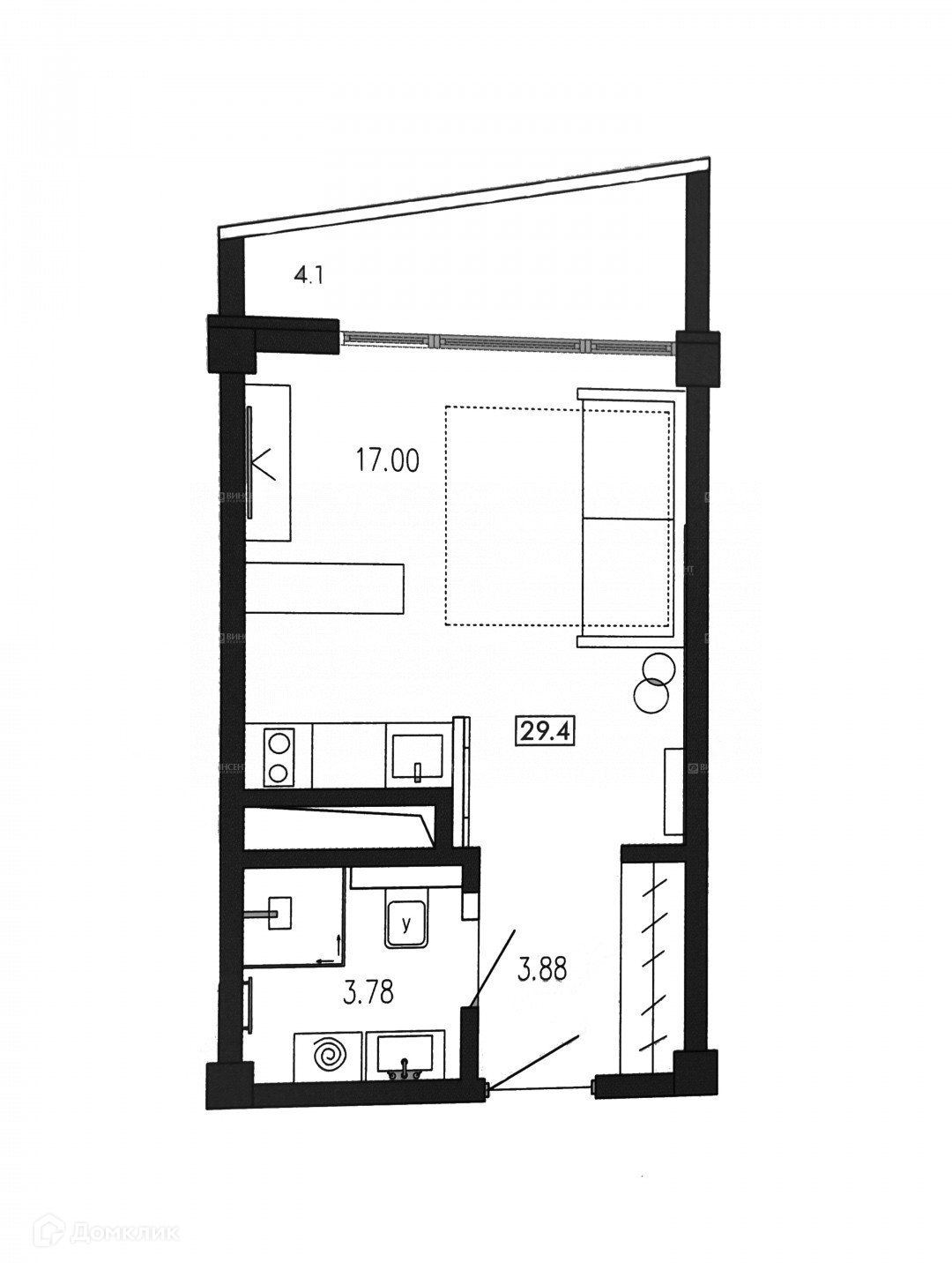 Общая площадь 29.4 м2