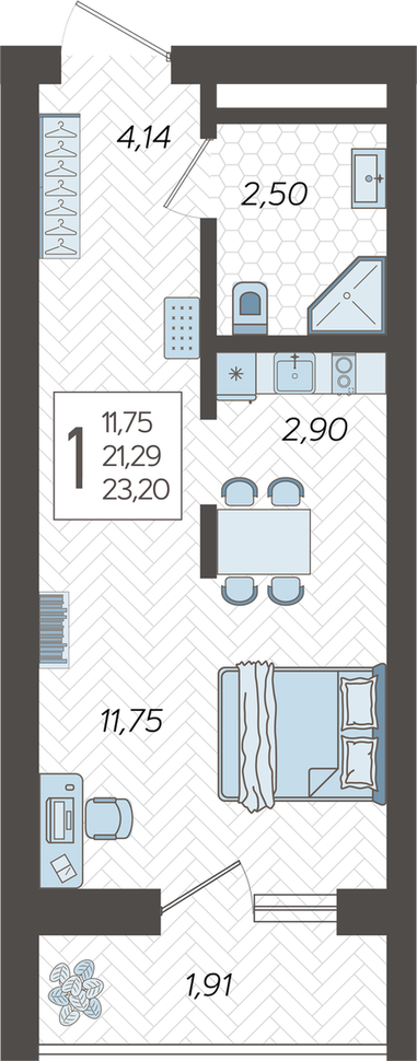 Общая площадь 23.2 м2