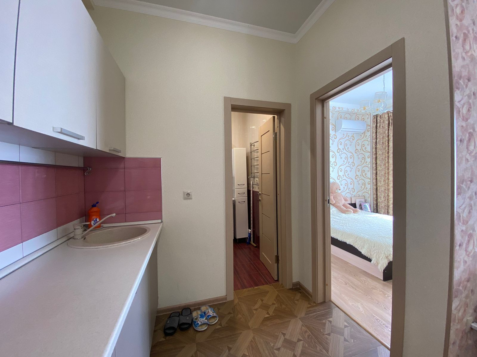 Продается Евродвушка в самом центре курортного городка . Отличное место расположение  Всё в шаговой доступности  до моря 150 м , ЖД станция "Известия", остановка общественного транспорта ,магазины, кафе.Отлично подойдет для проживания а так же может отлично сдаваться по суточно доходность могу рассказать .