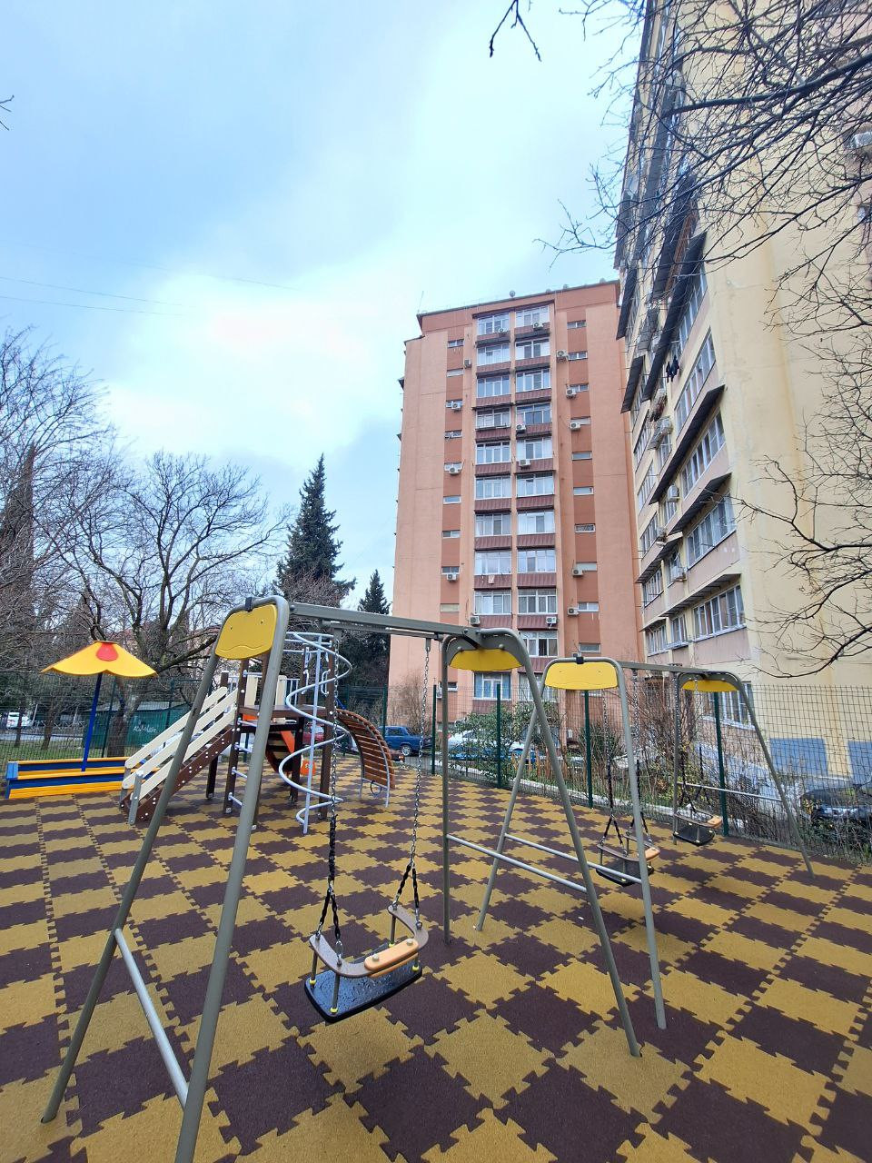 Окна выходят во двор, с видом на Олимпийский парк.