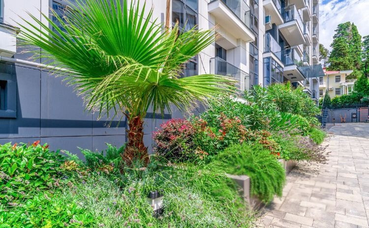 В комплексе так же имеются зона отдыха, детская площадка, вся территория облагорожена лучшими специалистами по ландшафтному дизайну города Сочи.