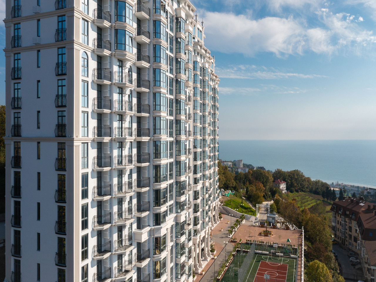 Комплекс расположен в самом центре города Сочи, в непосредственной близости от всех необходимых объектов инфраструктуры. Рядом находятся магазины, кафе, рестораны, парки и пляжи.