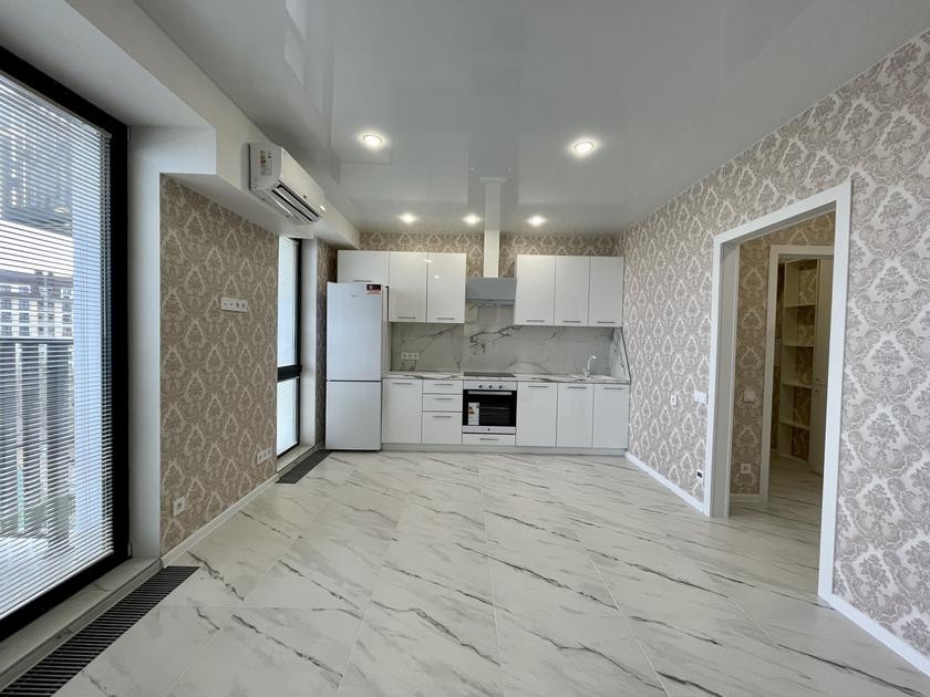 Пpедлагаем просторную студию в aпаpтаментном комплексе "Mоpавия". Сделан очень качественный ремонт: на полу керамогранит, установлен тёплый пол, стены выровнены и оклеены обоями, потолки натяжные, санузел выложен кафельной плиткой, гардеробная полностью оборудована, горизонтальная разводка отопления.