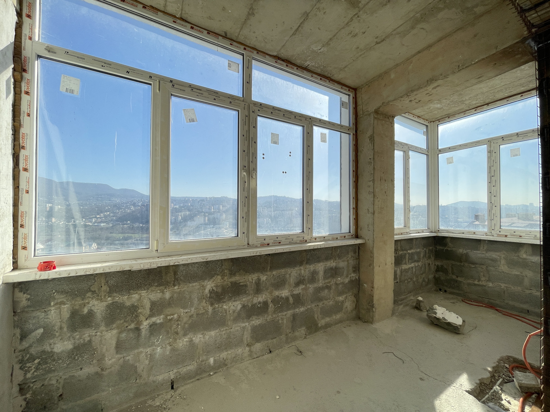 Отличный вид из окон на город и горы.