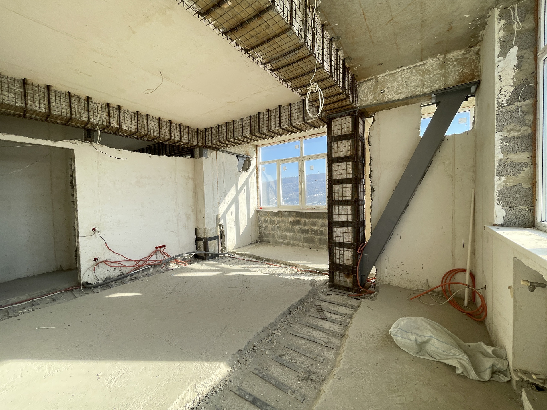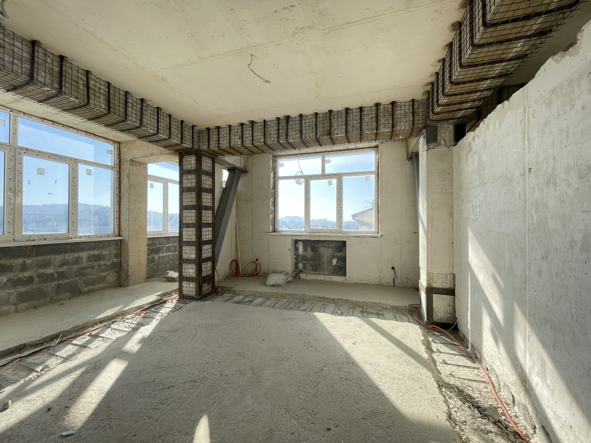 Распланирована в 2 просторных комнаты и кухню. Выполнена предчистовая отделка, разводка электричества.