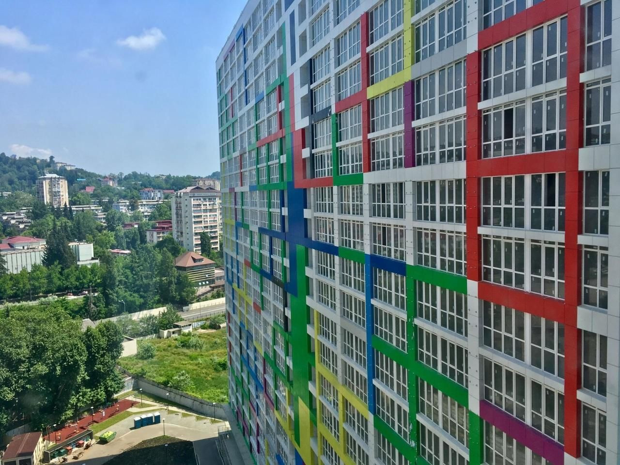 Комплекс состоит из трех 25 этажных домов, внизу располагаются коммерческие площади (общепит, магазины, аптеки, кофейни, супермаркеты и многое другое). На закрытой территории для жителей комплекса детские игровые и спортивные площадки, открытый и закрытый паркинг. Рядом с комплексом великолепная набережная реки Сочи, гимназия, муниципальный детский сад, детская и взрослая поликлиники, остановка общественного транспорта, продуктовый рынок. В доме шесть лифтов (четыре пассажирских и два грузопассажирских).