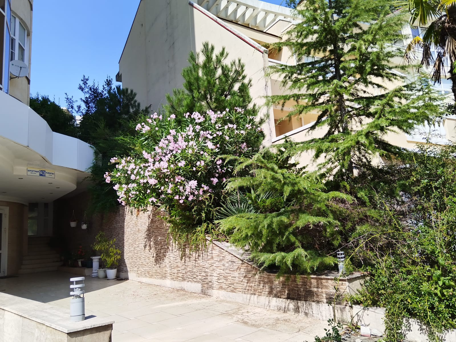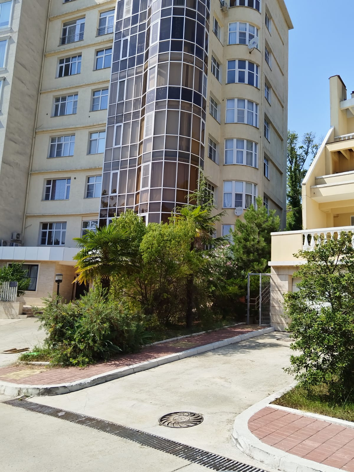 .Въезд с Курортного проспекта по ровной дороге окруженной кипарисами строго по пропускам ,считываемым с номеров машин.