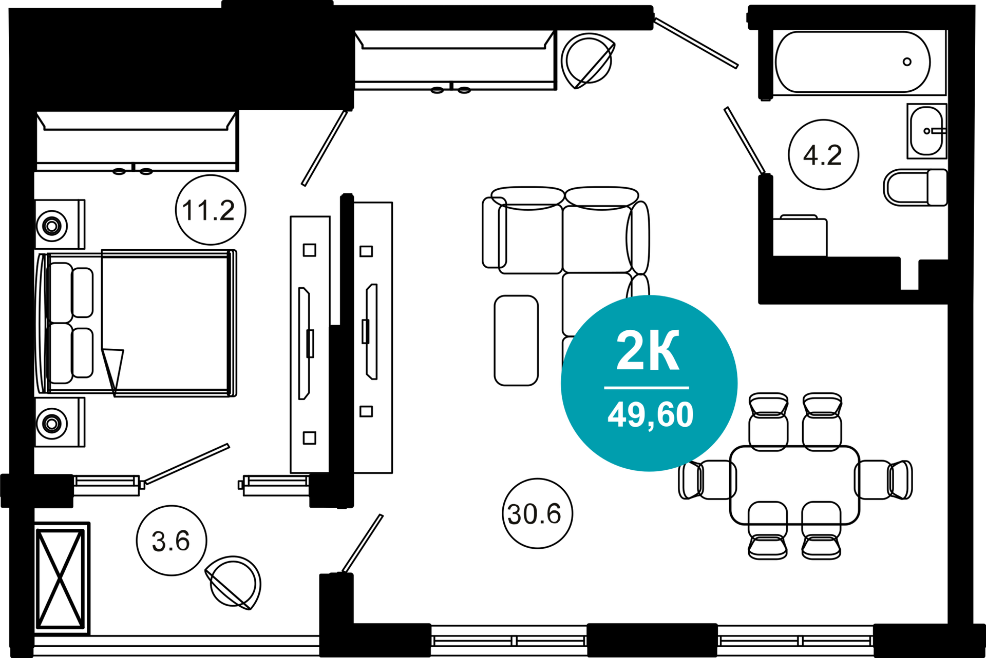 • Площадь: от 49.6 м2