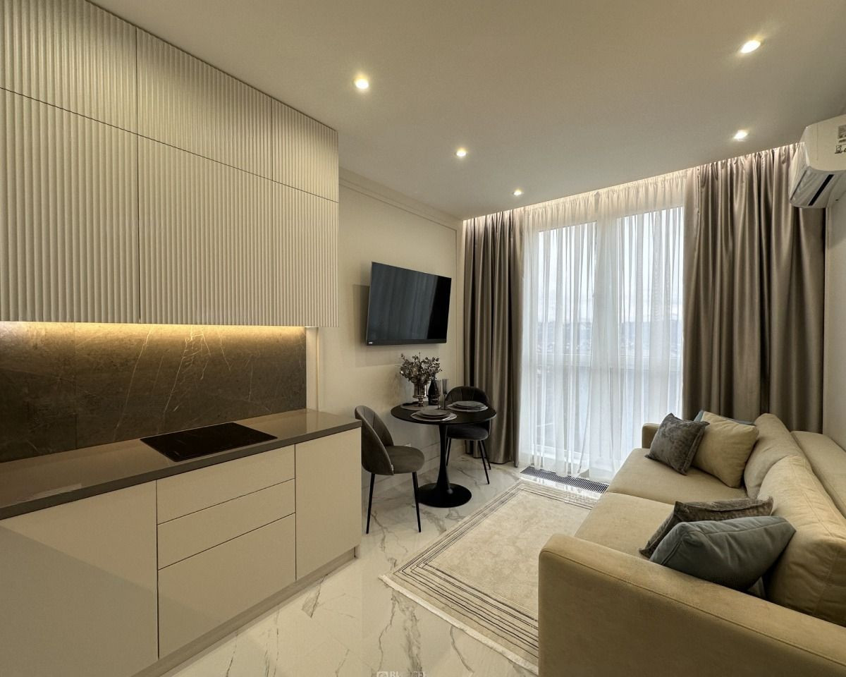 Эксклюзивное предложение для истинных ценителей роскоши и комфорта! Почувствуйте атмосферу уюта и элегантности в квартире с дизайнерским ремонтом, мебелью и техникой премиум-класса. Выделенная спальня с гардеробной и подъемным механизмом кровати для дополнительного хранения вещей, кухня-гостиная со стильной столовой зоной и встроенной техникой Kuppersberg, ванная комната, где можно расслабиться после напряженного дня, и просторная прихожая.