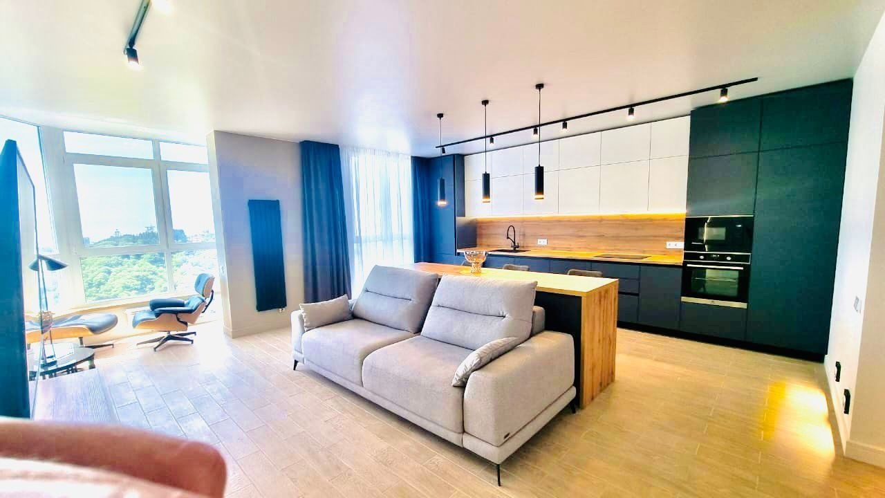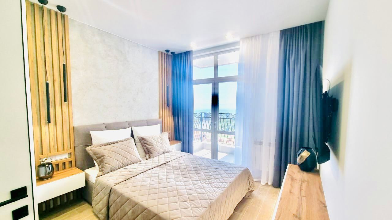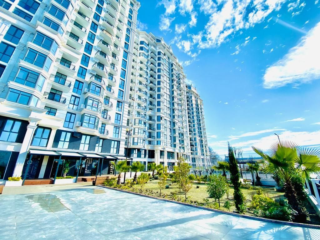 Квартира 75 квадратных метров, две изолированные спальни и просторная кухня-гостиная, находится на 8 этаже элитного 19-этажного жилого комплекса в самом центре города Сочи!