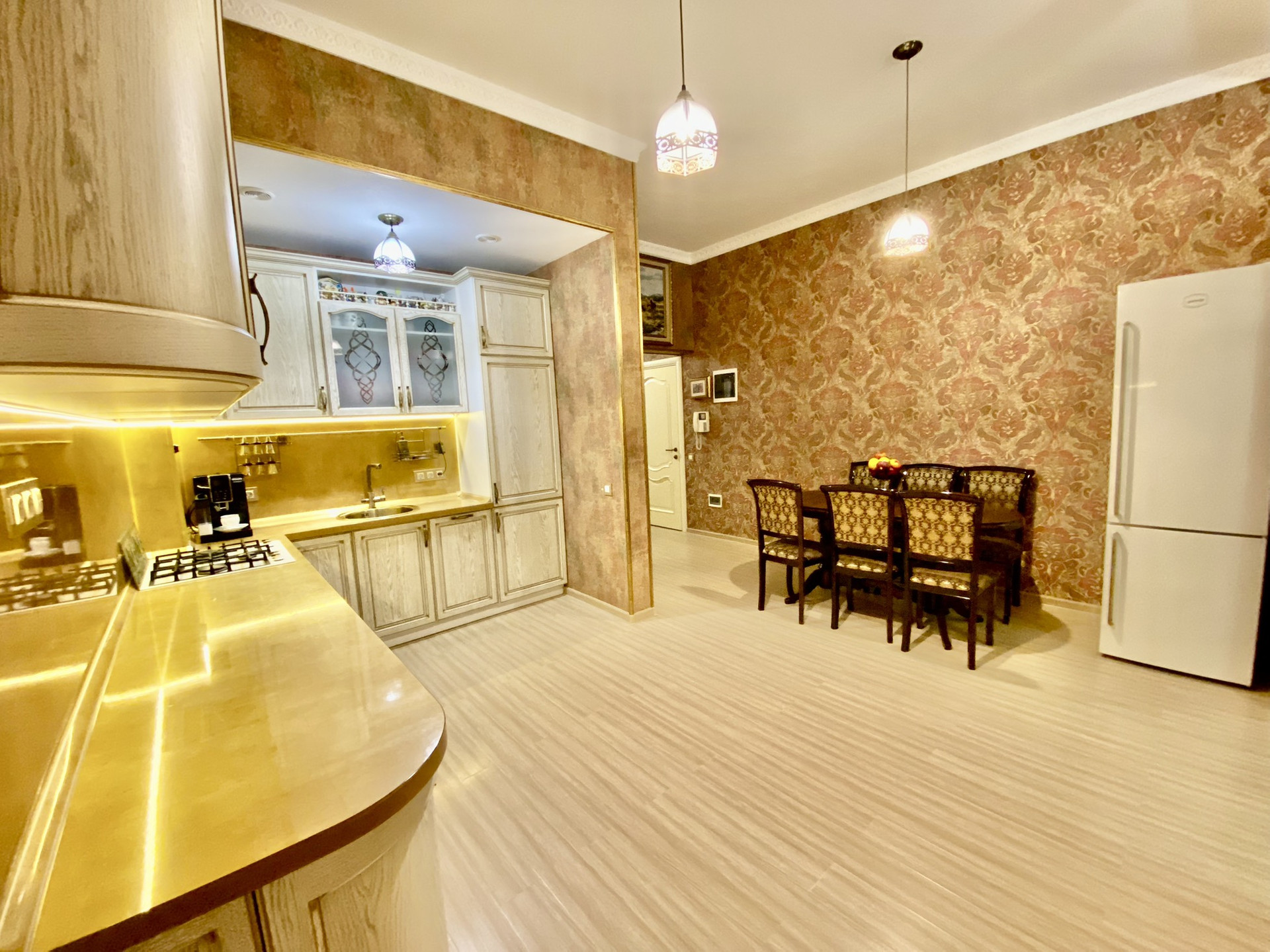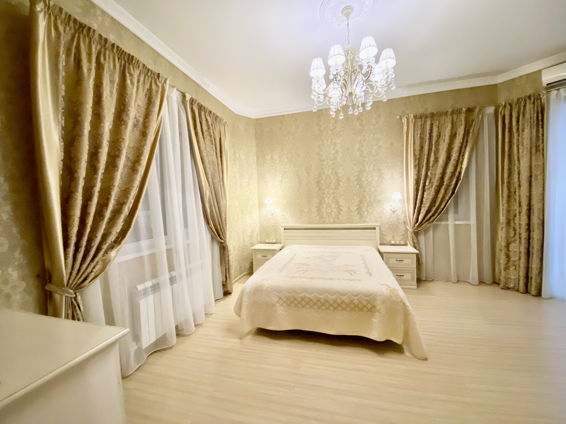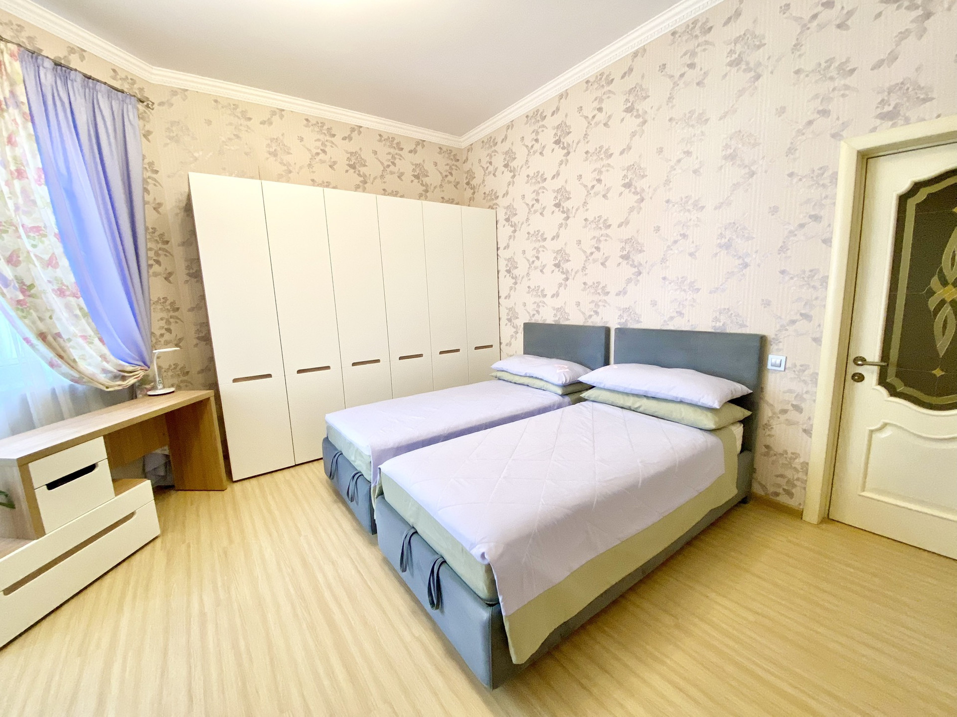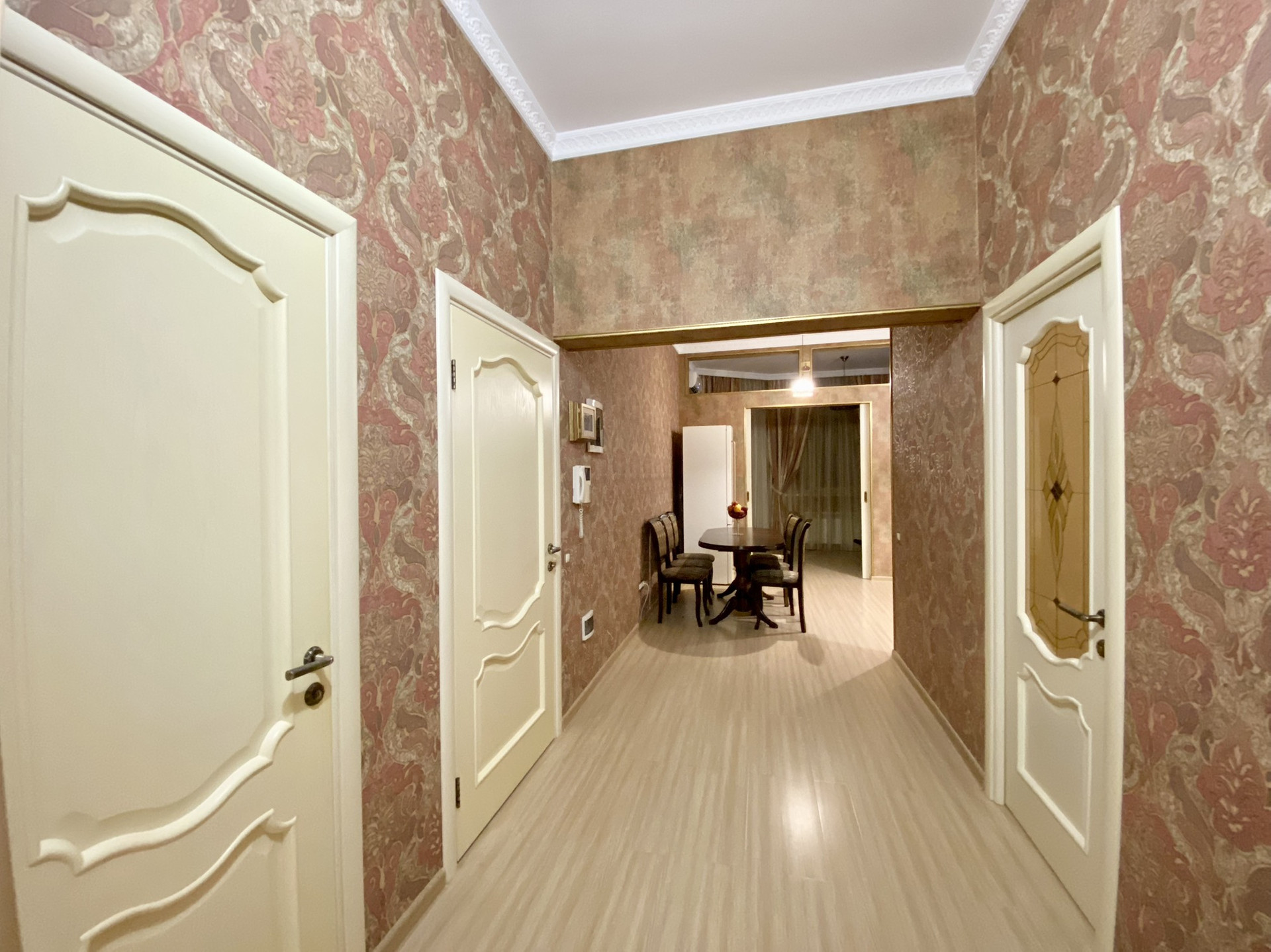 Высота потолков 3,2 м, 111 кв. м, две изолированные спальни, детская, большая кухня-гостиная, кабинет, гардеробная, 2 санузла, большой балкон. Коммуникации центральные, газовый котёл.