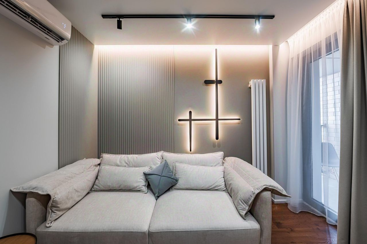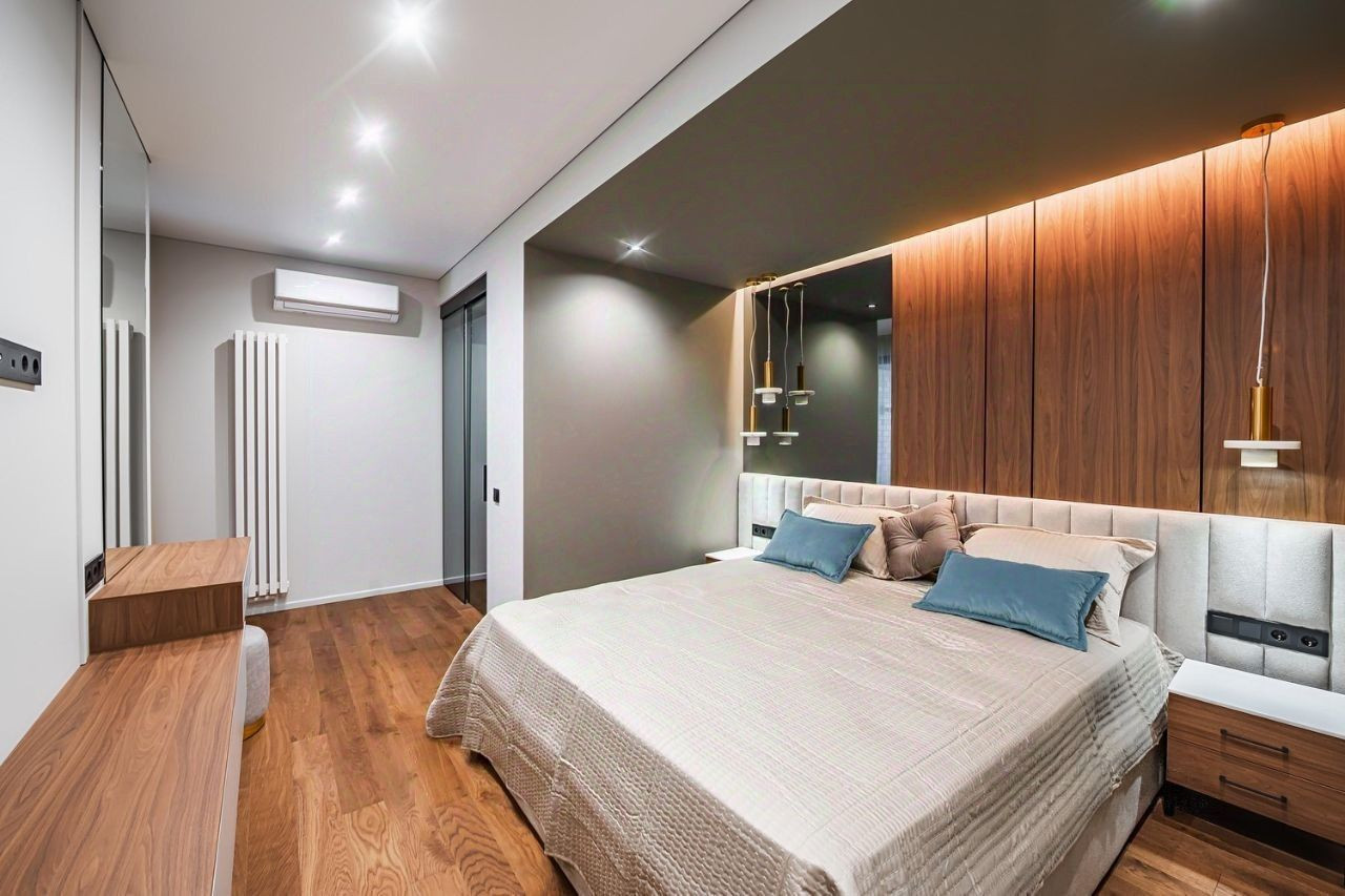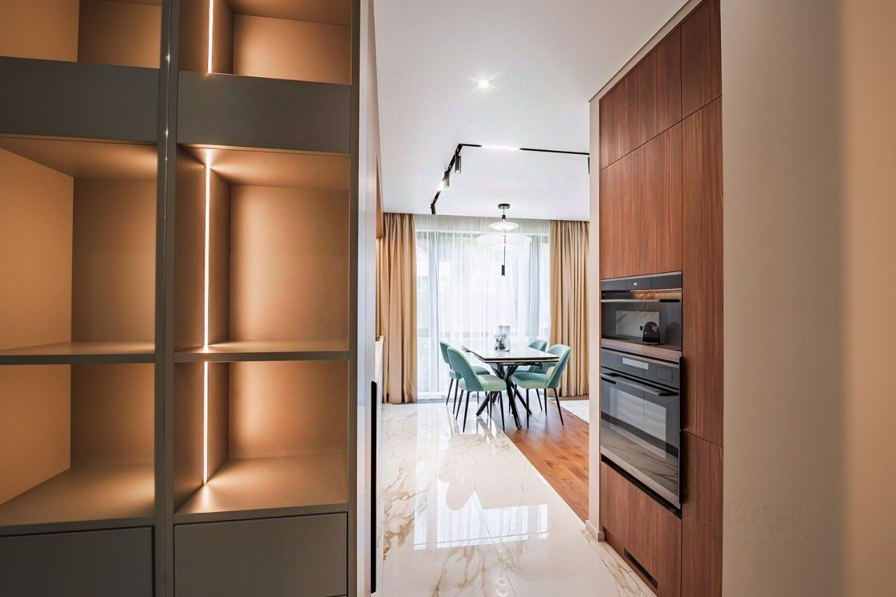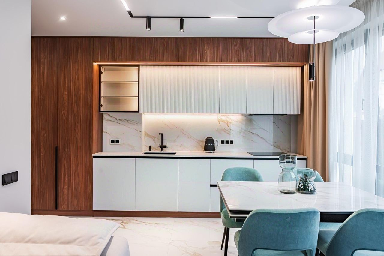 За счет больших панорамных окон, апартаменты всегда наполнены естественным светом. Есть открытый балкон. Очень хороший вид на территорию апартаментного комплекса и морское побережье.