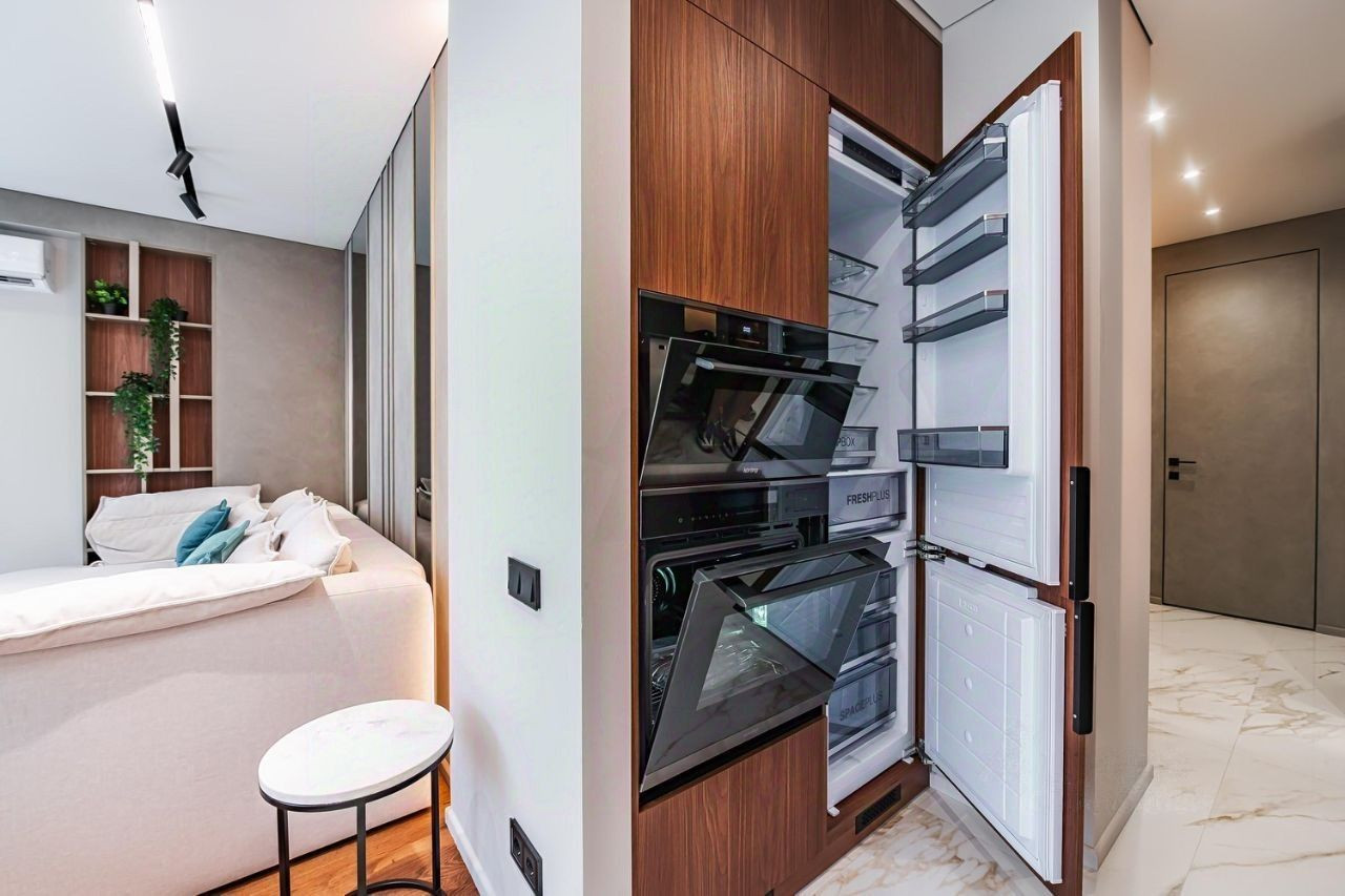 Произведен ремонт из качественных материалов. Установлена импортная бытовая техника.