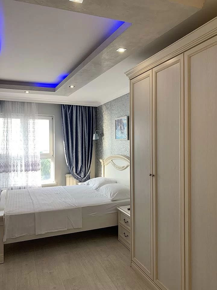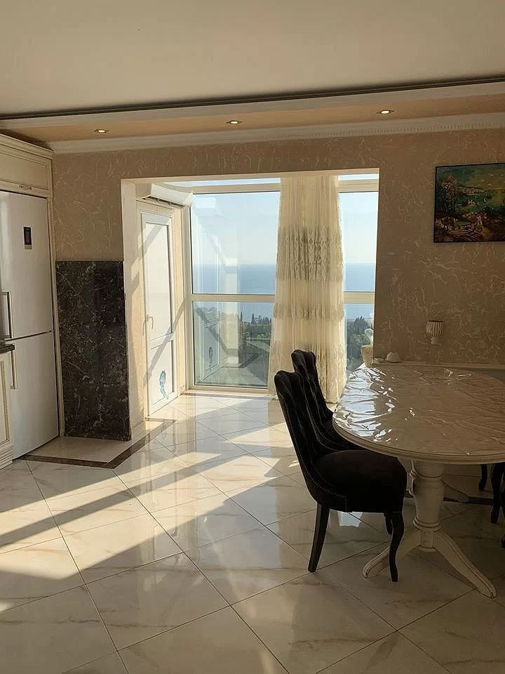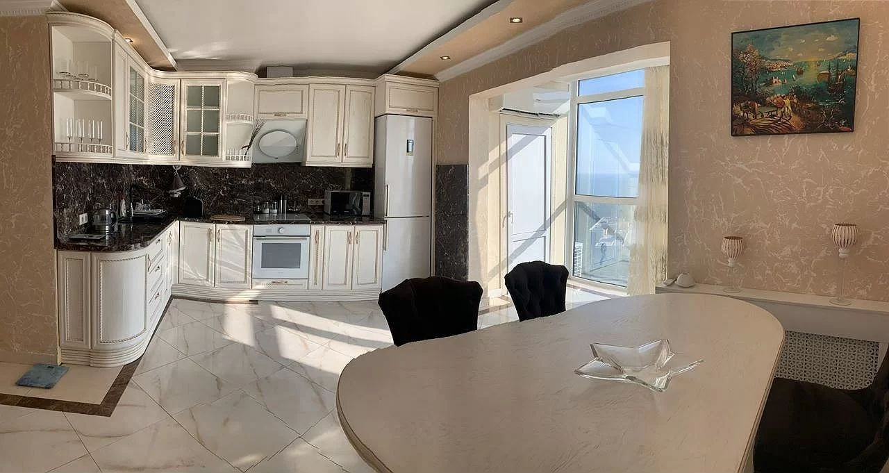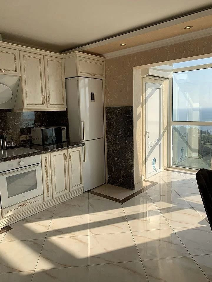 В квартире выполнен дизайнерский ремонт. Мебель Италия, техника производства Германии. Все сделано со вкусом. Прекрасный вид на море и санаторий «Родина»!
