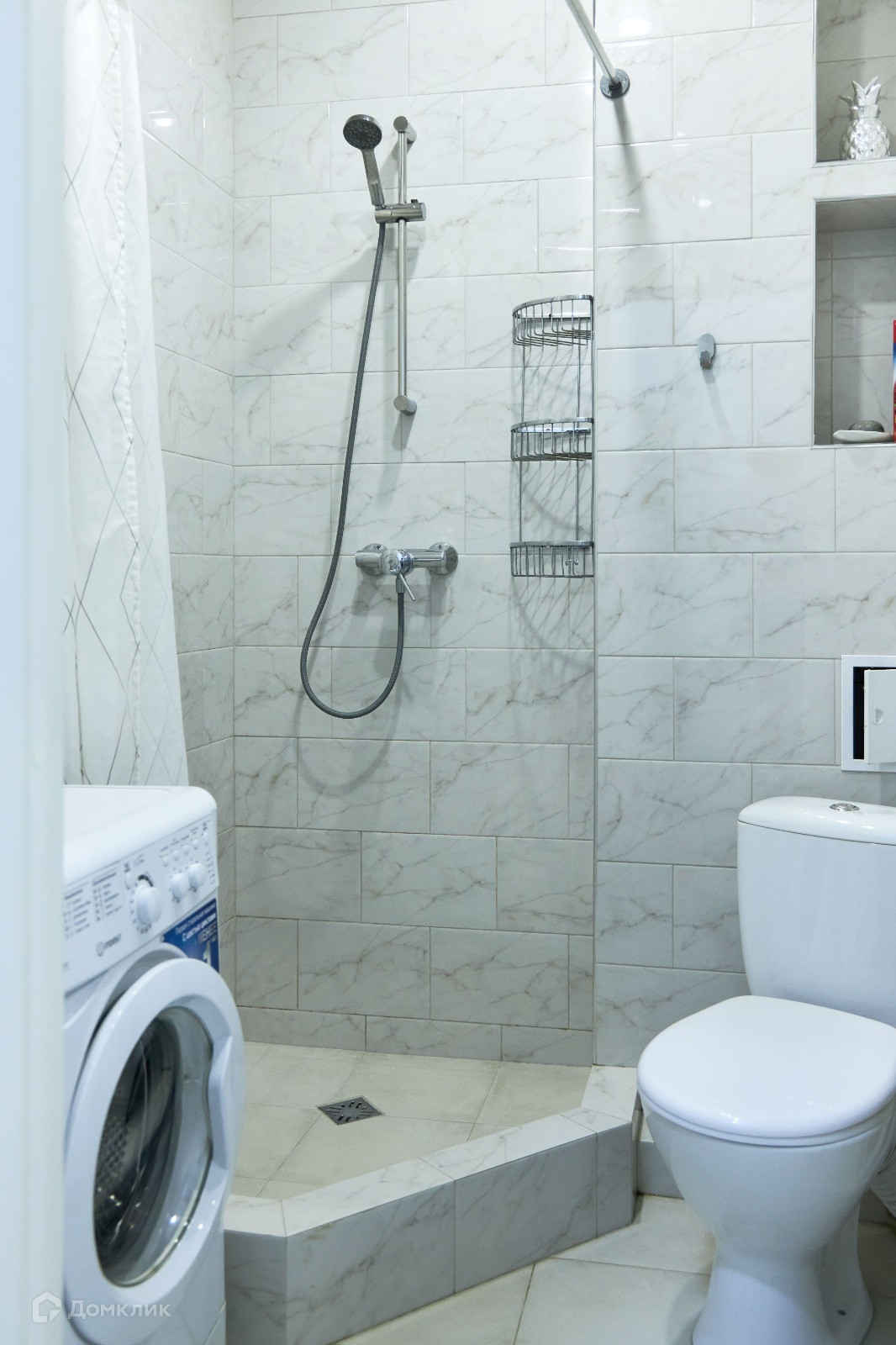 Санузел выложен плиткой Keramo Marazzi под мрамор. Сантехника Grohe (Германия).