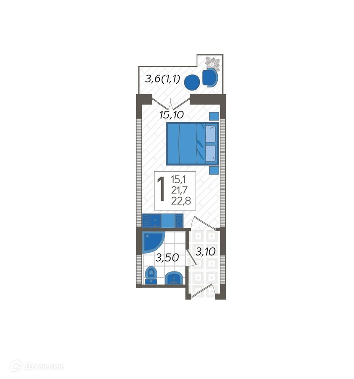 Общая площадь 22.8 м2