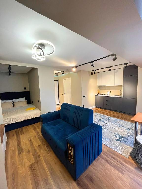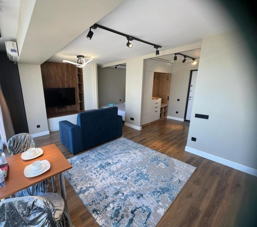 В студии есть все для проживания. Выполнен качественный ремонт, установлена мебель, есть двуспальная кровать, диван, установлена вся необходима техника.