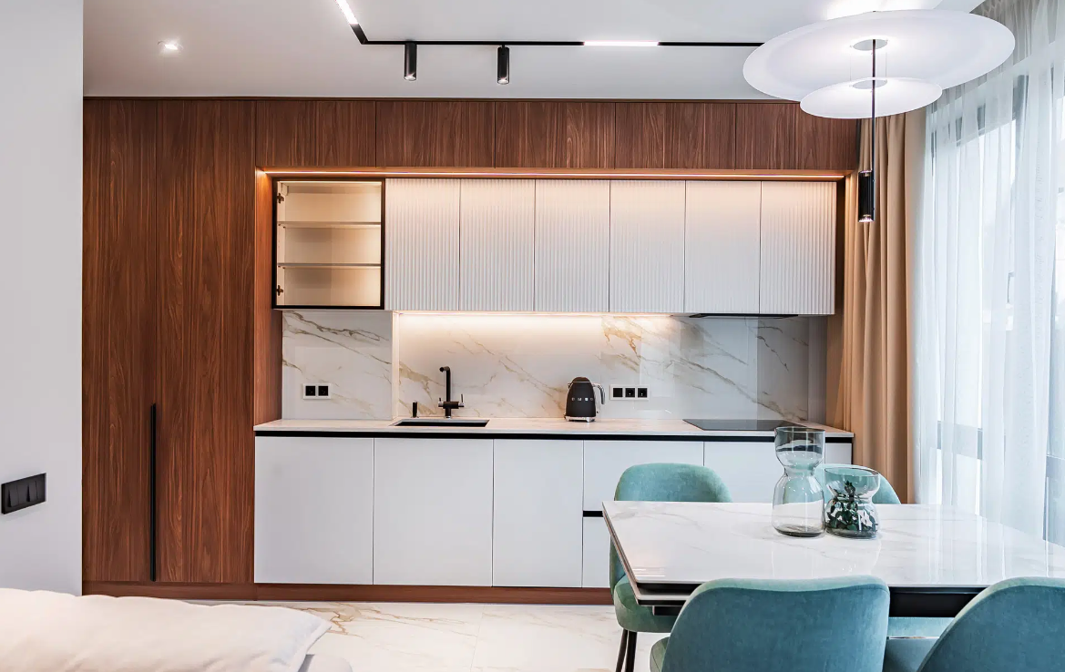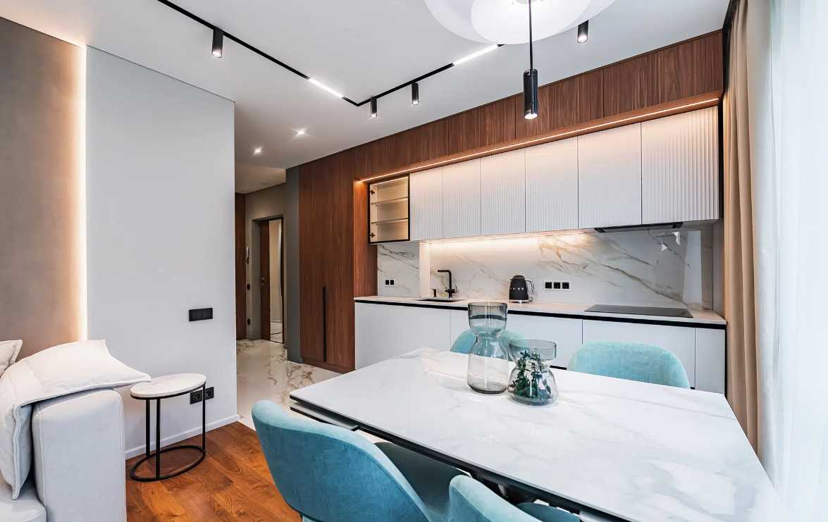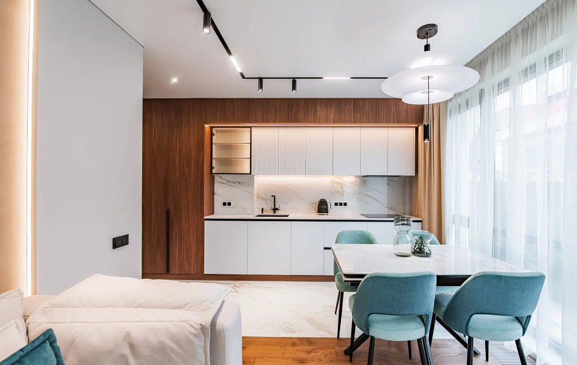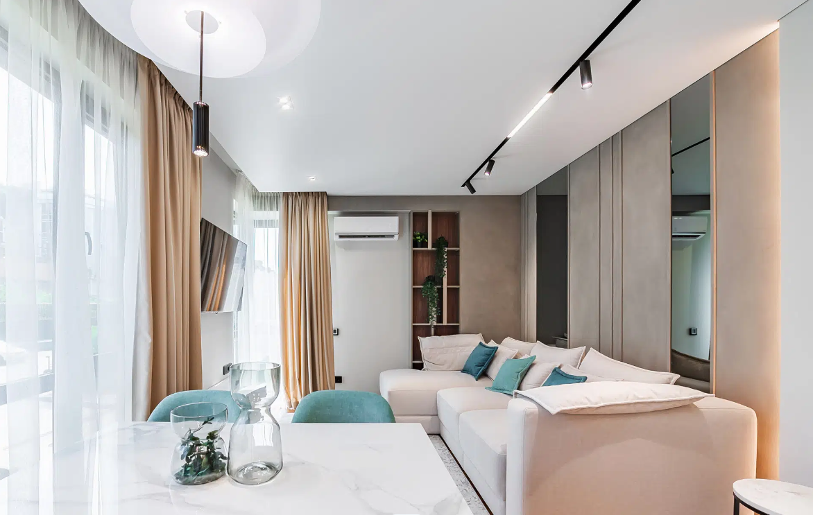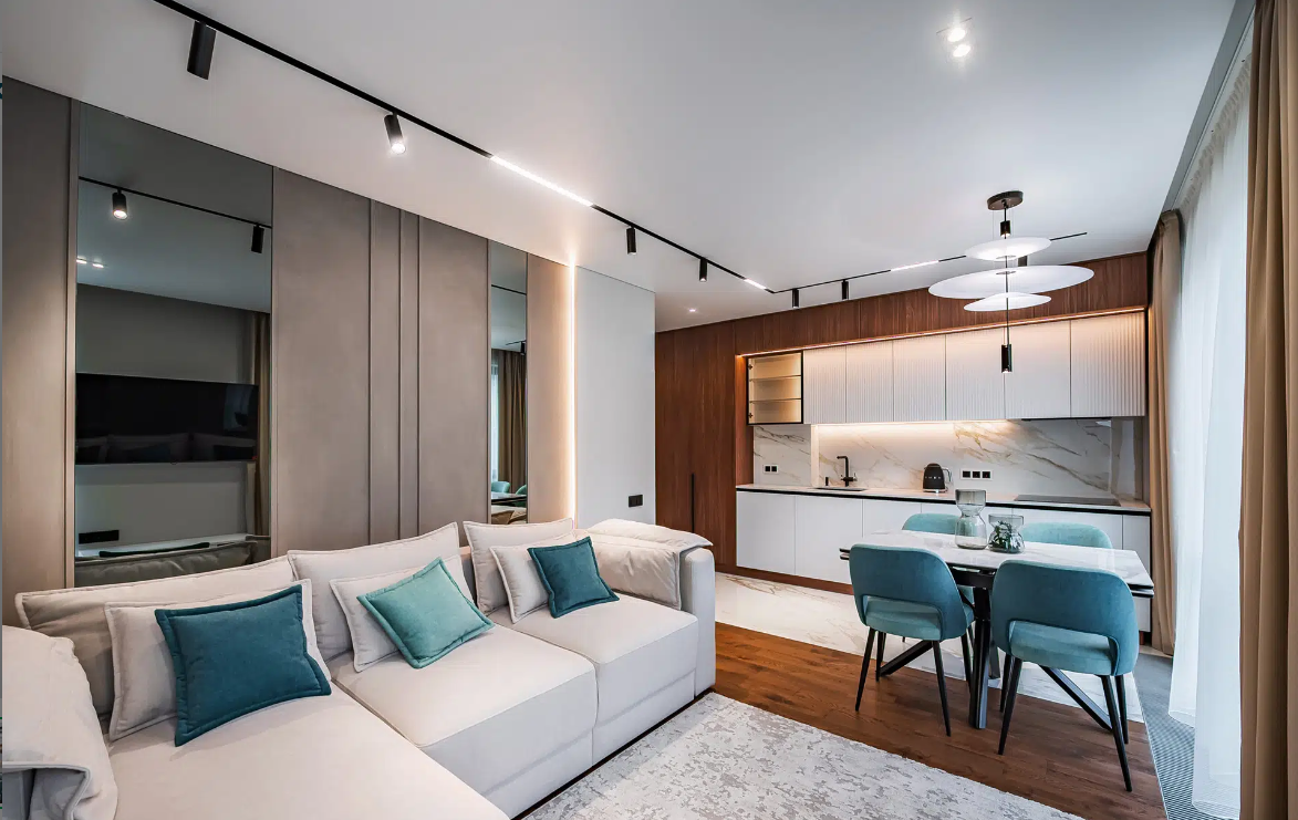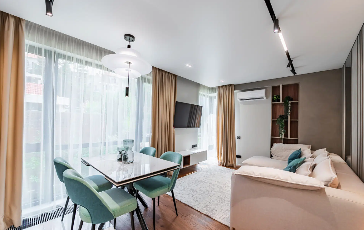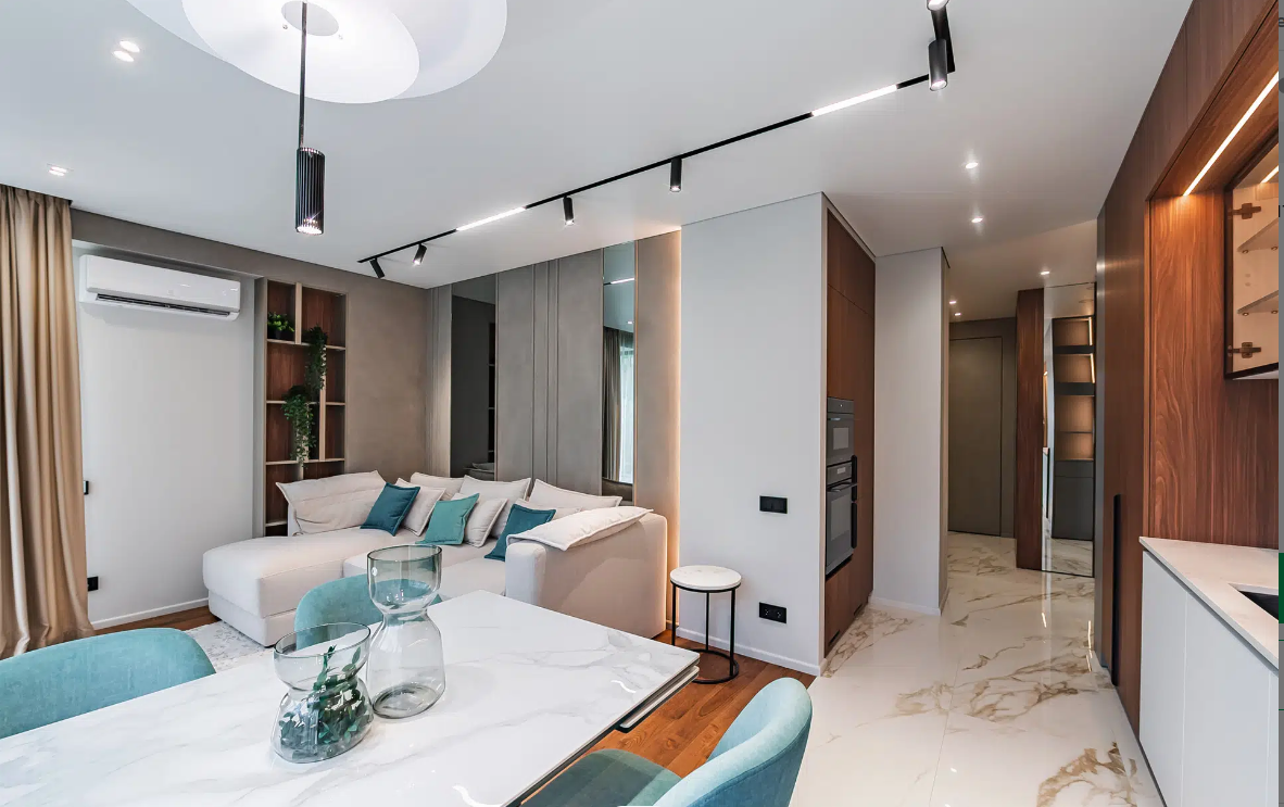 В апартаментах выполнен новый качественный дизайнерский ремонт, из дорогих материалов, ремонт делали для себя!