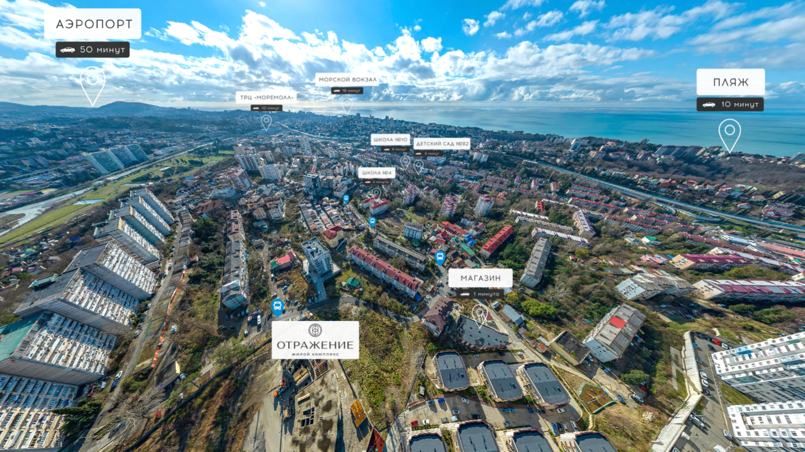 В состав проекта ЖК Отражение входят 2 корпуса, состоящие из 4 секций с шикарными видами на море и горы. В комплексе представлены 272 квартиры: от функциональных студий до еврочетырехкомнатных квартир.