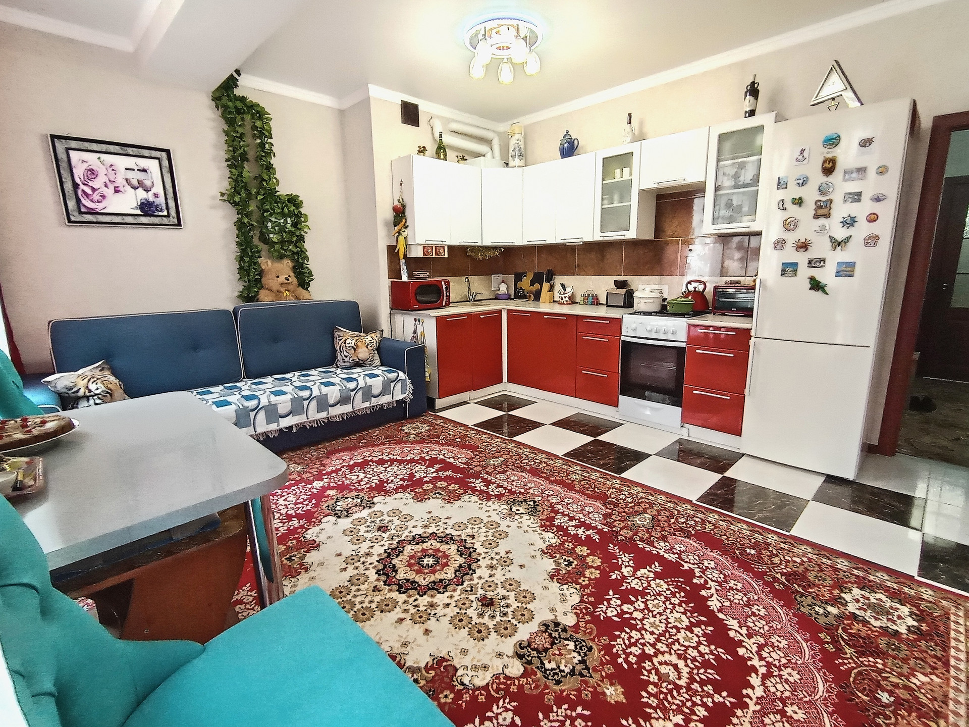 Евро двушка: кухня -гостиная и комната с выходом на лоджию.