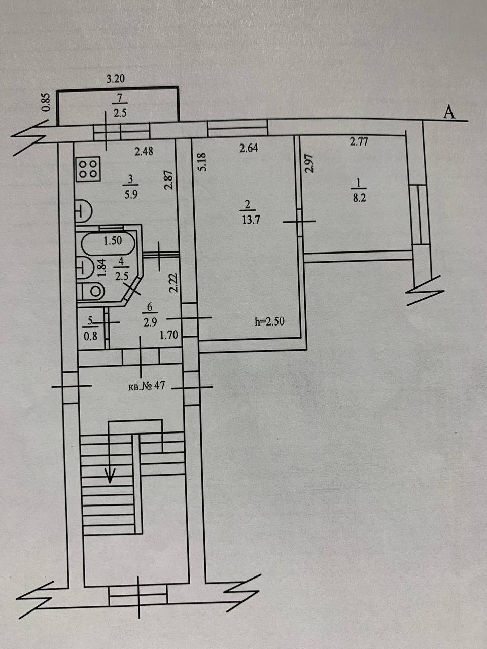 Высота потолков 2.5 м