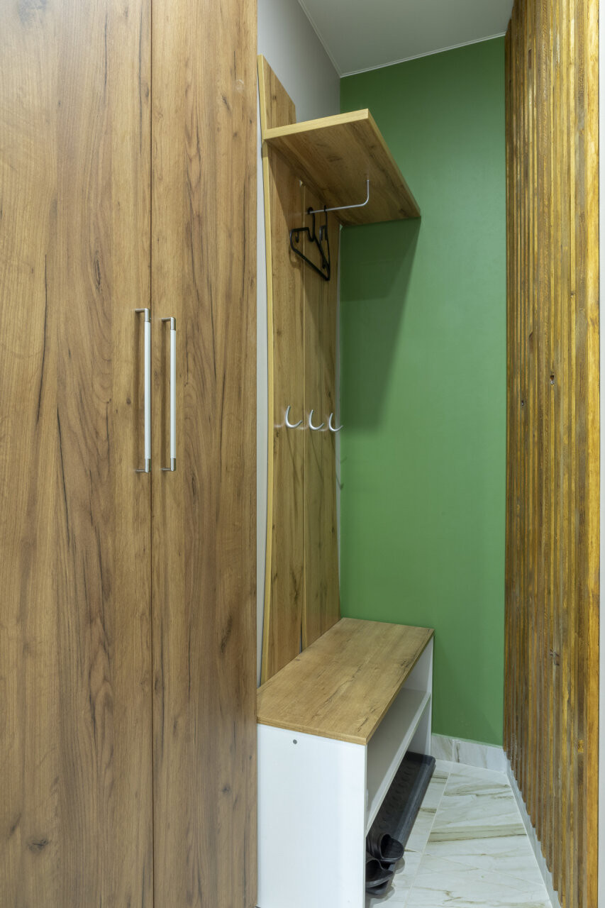 Эта компактная квартира идеально подходит для одного человека или молодой пары. Благодаря продуманному дизайну и использованию каждого квадратного метра, здесь есть всё необходимое для комфортной жизни.
