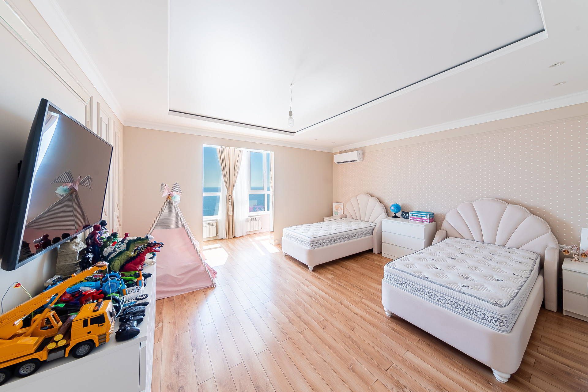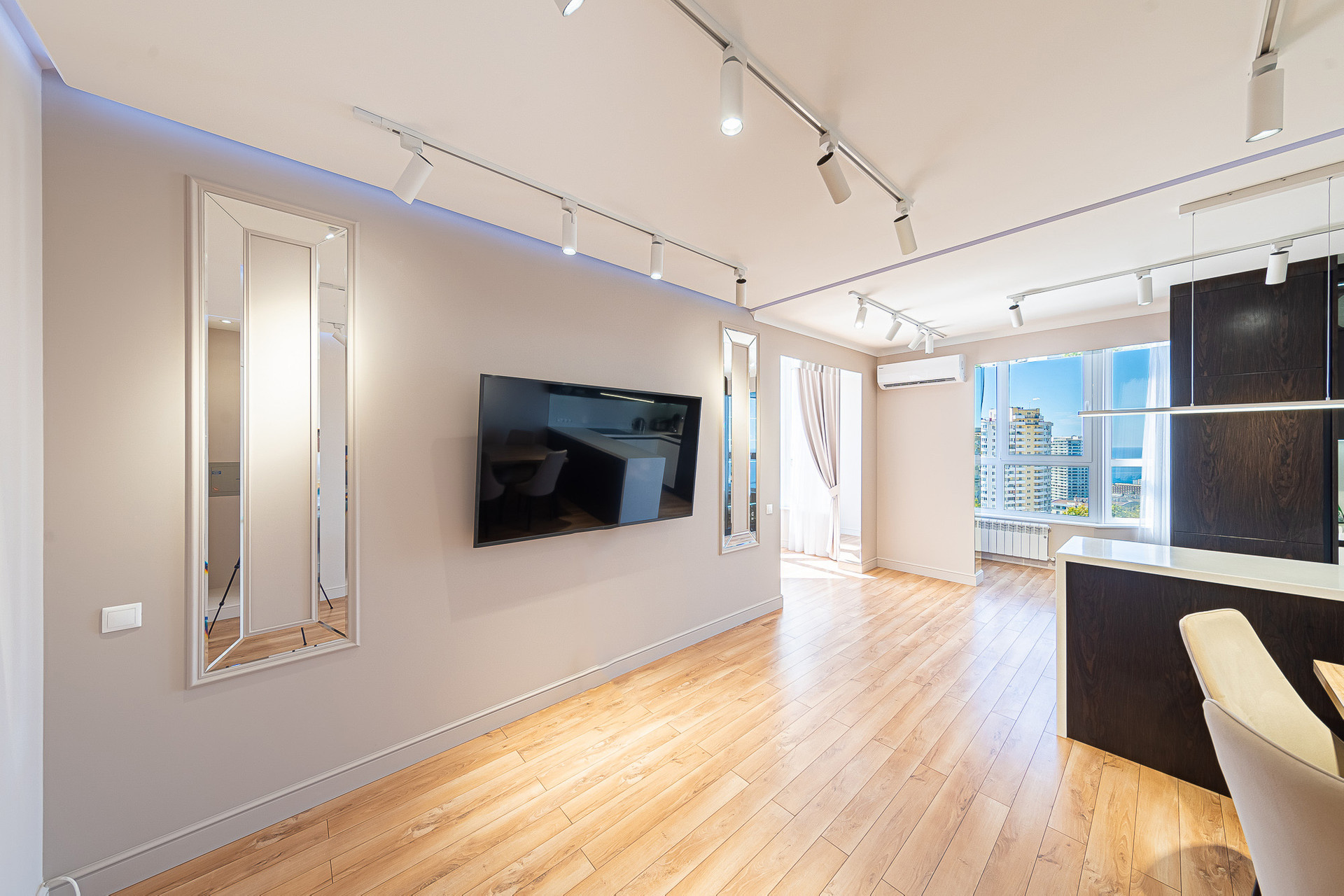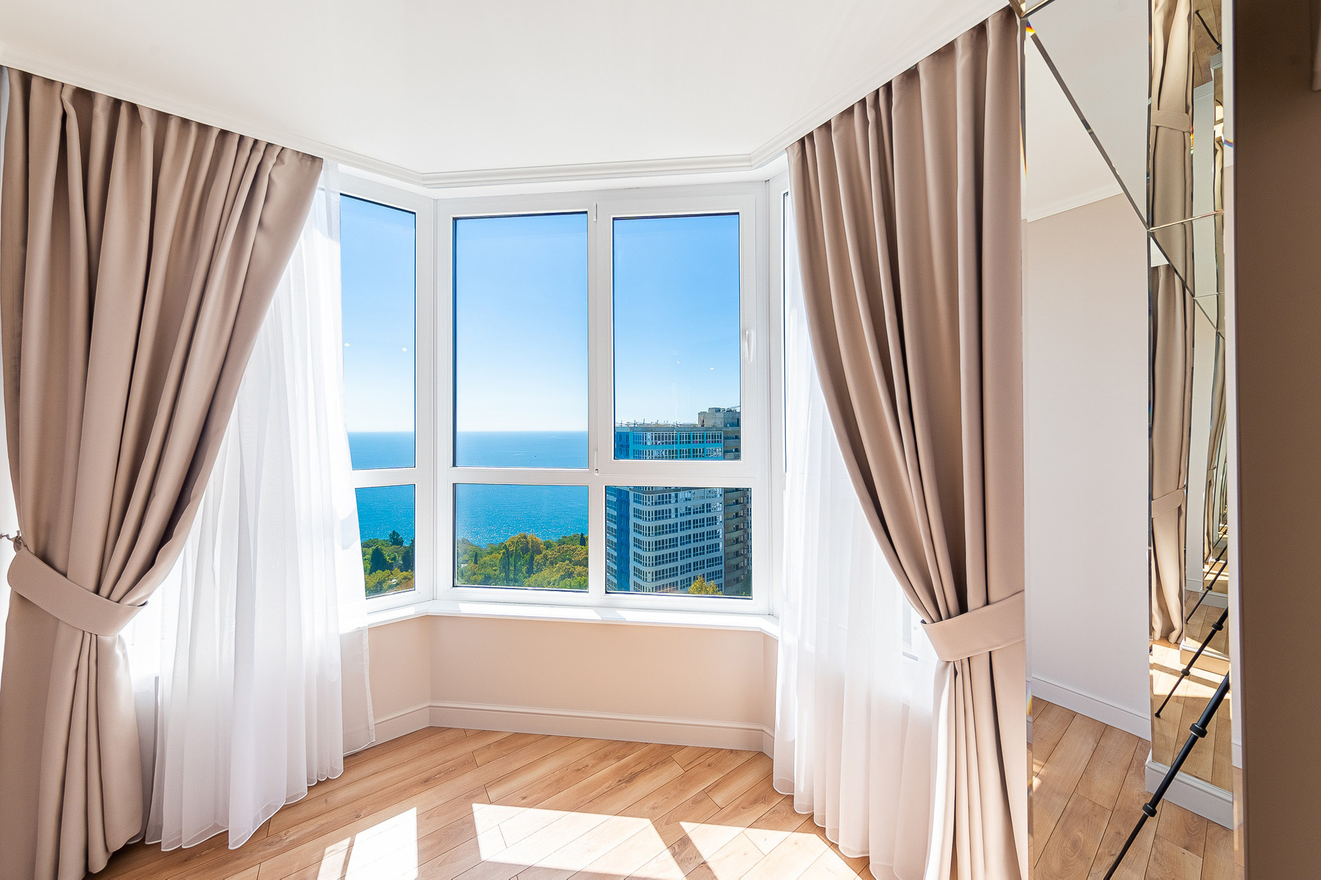 В квартире выполнен качественный ремонт, есть вся необходимая для проживания мебель и техника. Из окон c панорамным остеклением, открывается потрясающий вид на море, горы и город.