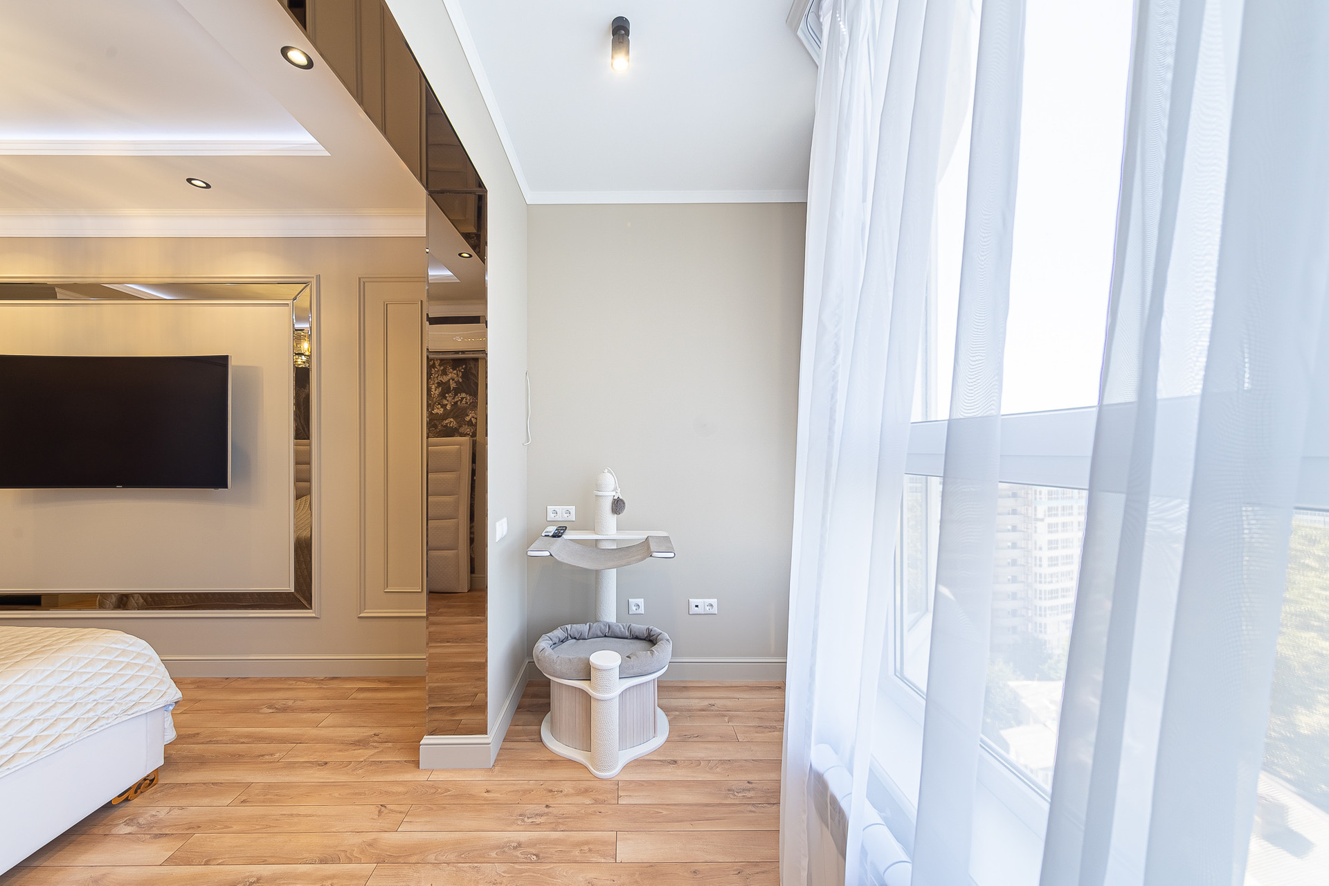 Планировка данной квартиры включает в себя: кухню-гостиную, спальную комнату, гардеробную зону, а также просторную лоджию с прекрасными видовыми характеристиками.