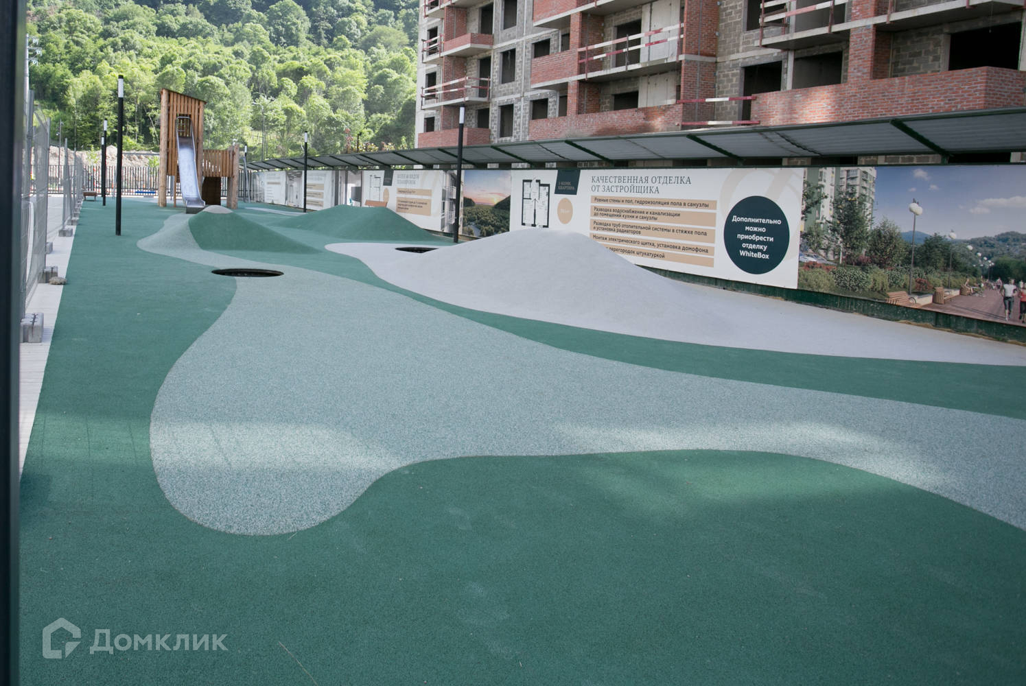 Новый жилой комплекс жк Флора расположен в спальном районе Кудепста - это самый зеленый район Сочи, тихий и живописный. Вдоль комплекса расположена благоустроенная набережная реки с беседками и скамейками. На территории комплекса детские и спортивные площадки, зоны барбекю, уличные тренажеры, видеонаблюдение по территории комплекса, на входе в каждый подъезд и на этажах, парковка для автомобилей и велосипедов.