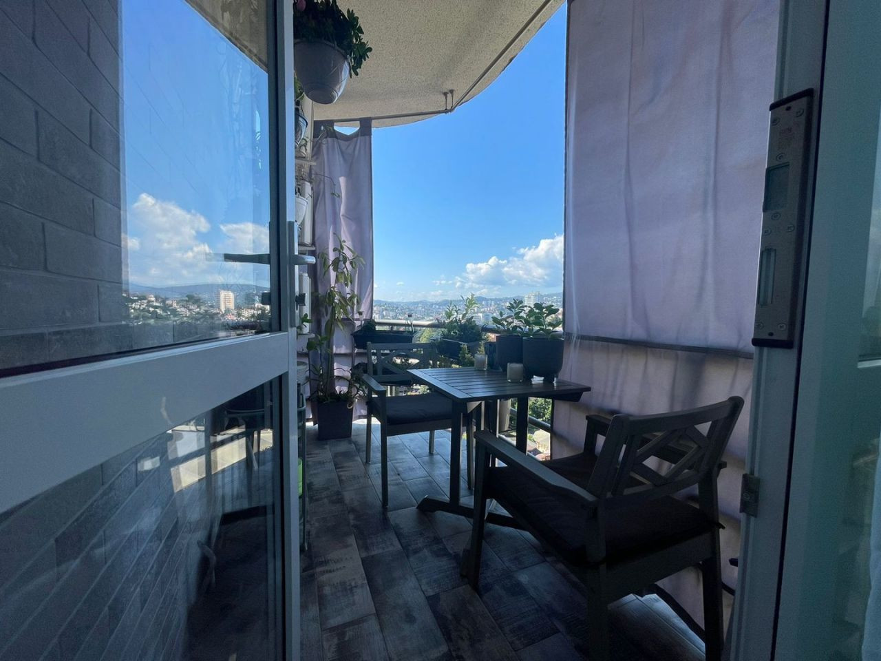 Просторный балкон, живописный вид на горы и город. Закрытая территория.
