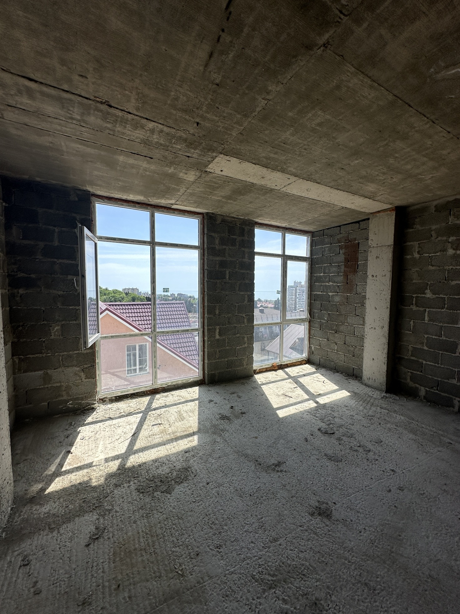 Отличная студия в черновом варианте, квадратная с двумя большими окнами.
