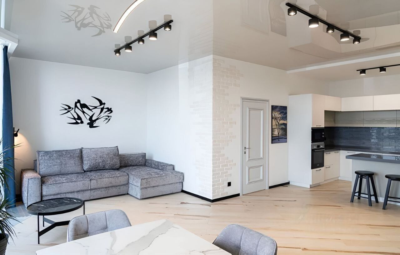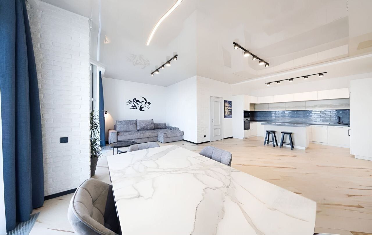 В квартире выполнен дизайнерский ремонт класса Deluxe с использованием отделочных материалов известных брэндов и под дизайнерским надзором. Мебель производства Италии, встроенная техника производства Германии.