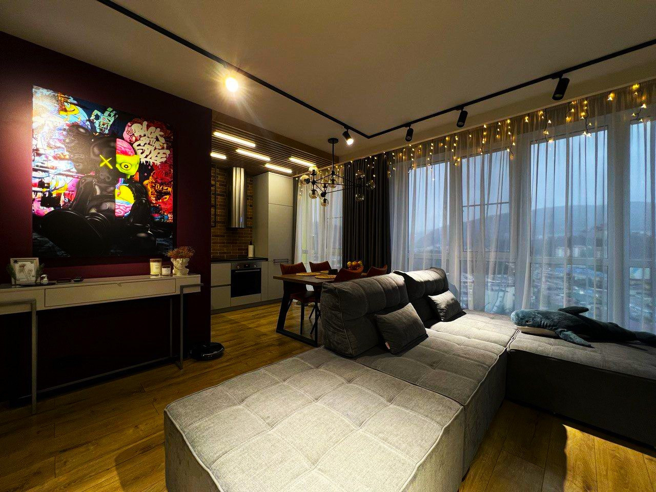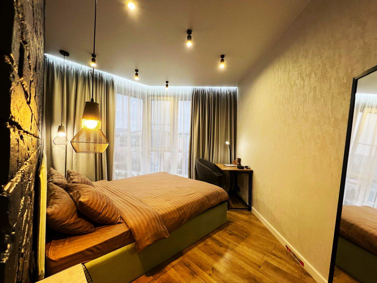 Уютная кухня-гостиная,  спальня,  и просторная ванная комната.