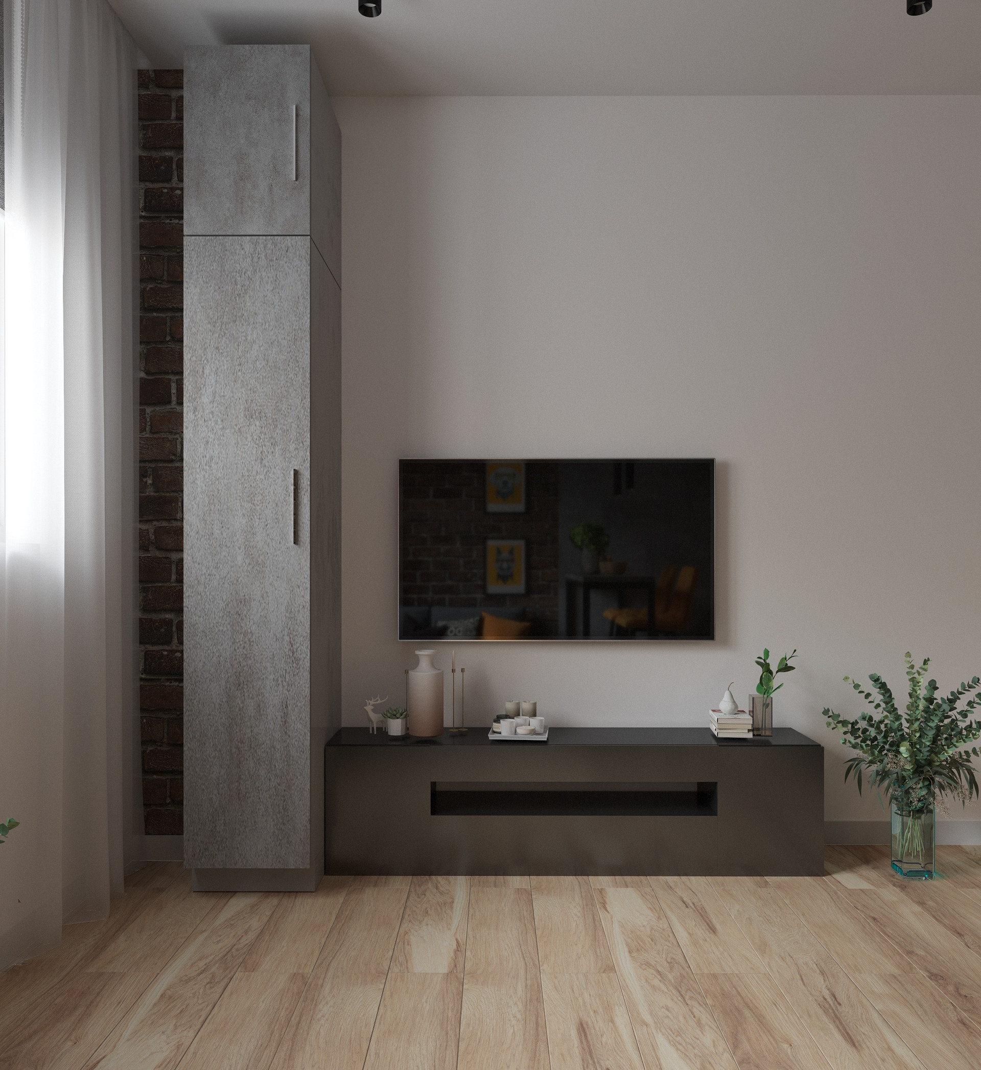 Номера сдаются в предчистовой отделке. На выбор есть три варианта дизайна: лофт, минимализм и неоклассицизм.