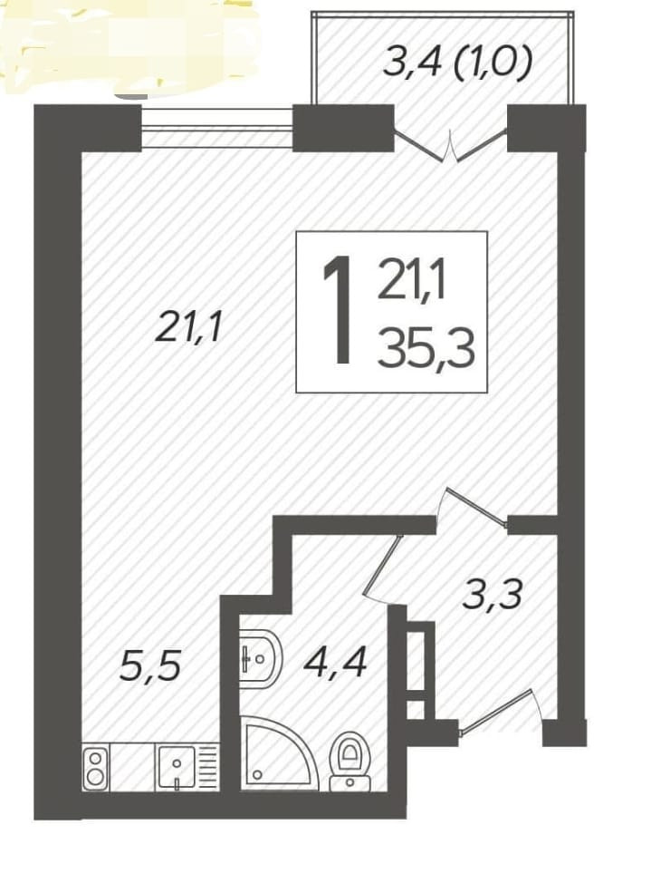 Общая площадь 35 м2