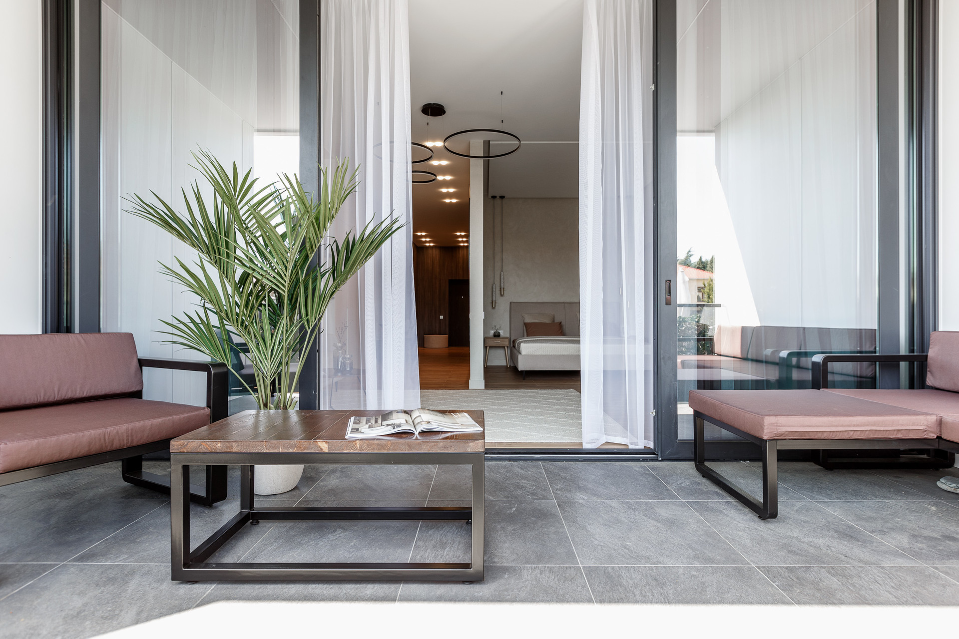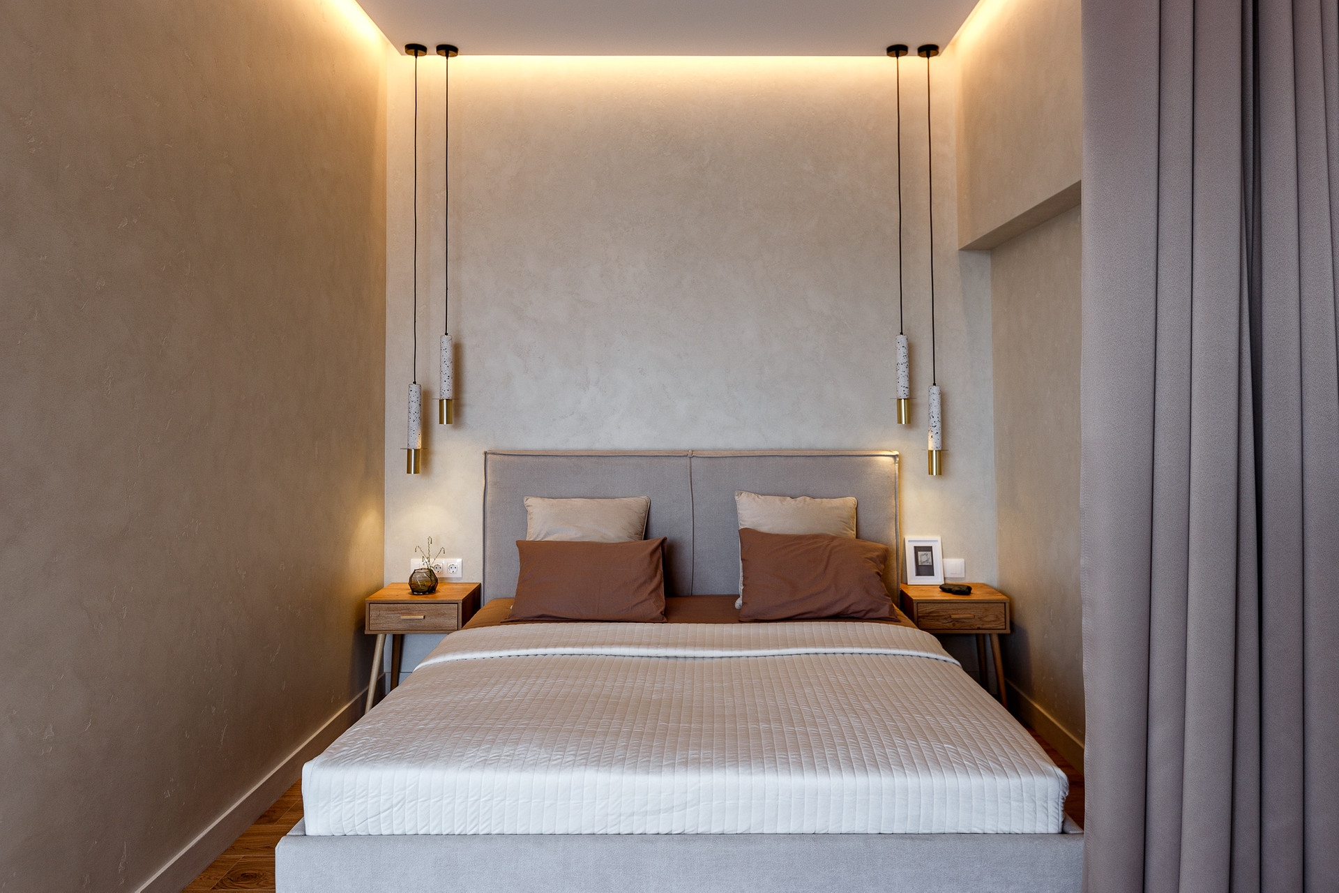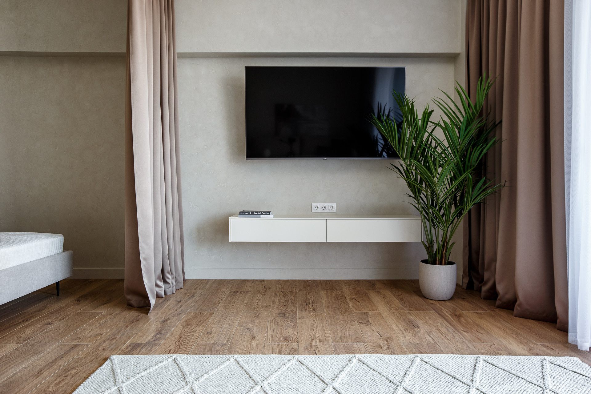 Стоит система умного дома Хайт Про, шторы на электрокарнизах.