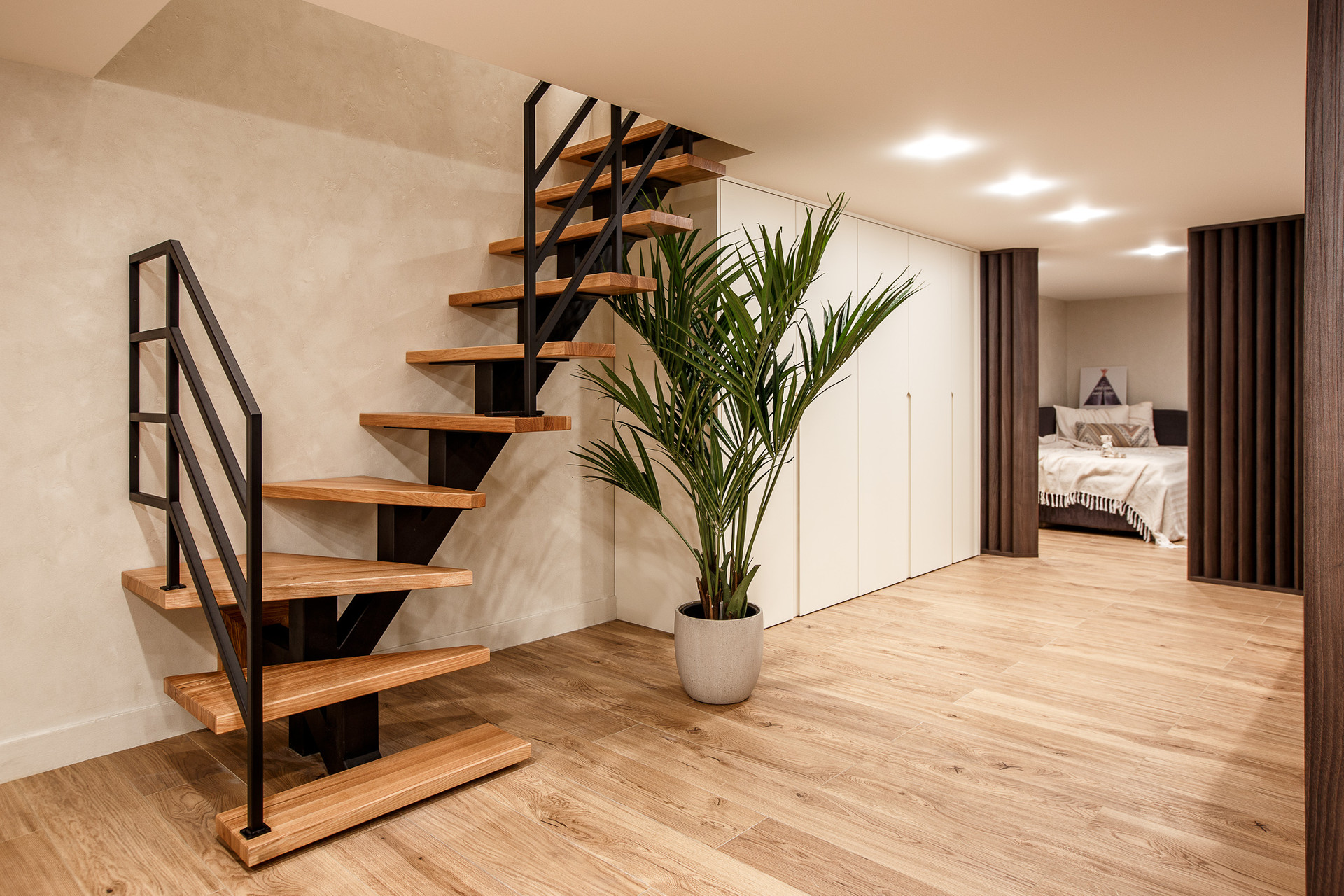 Нижний этаж - это бывший бассейн, увеличили лестничный пролет, для того чтобы