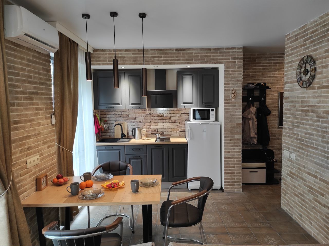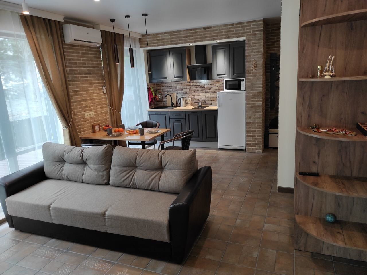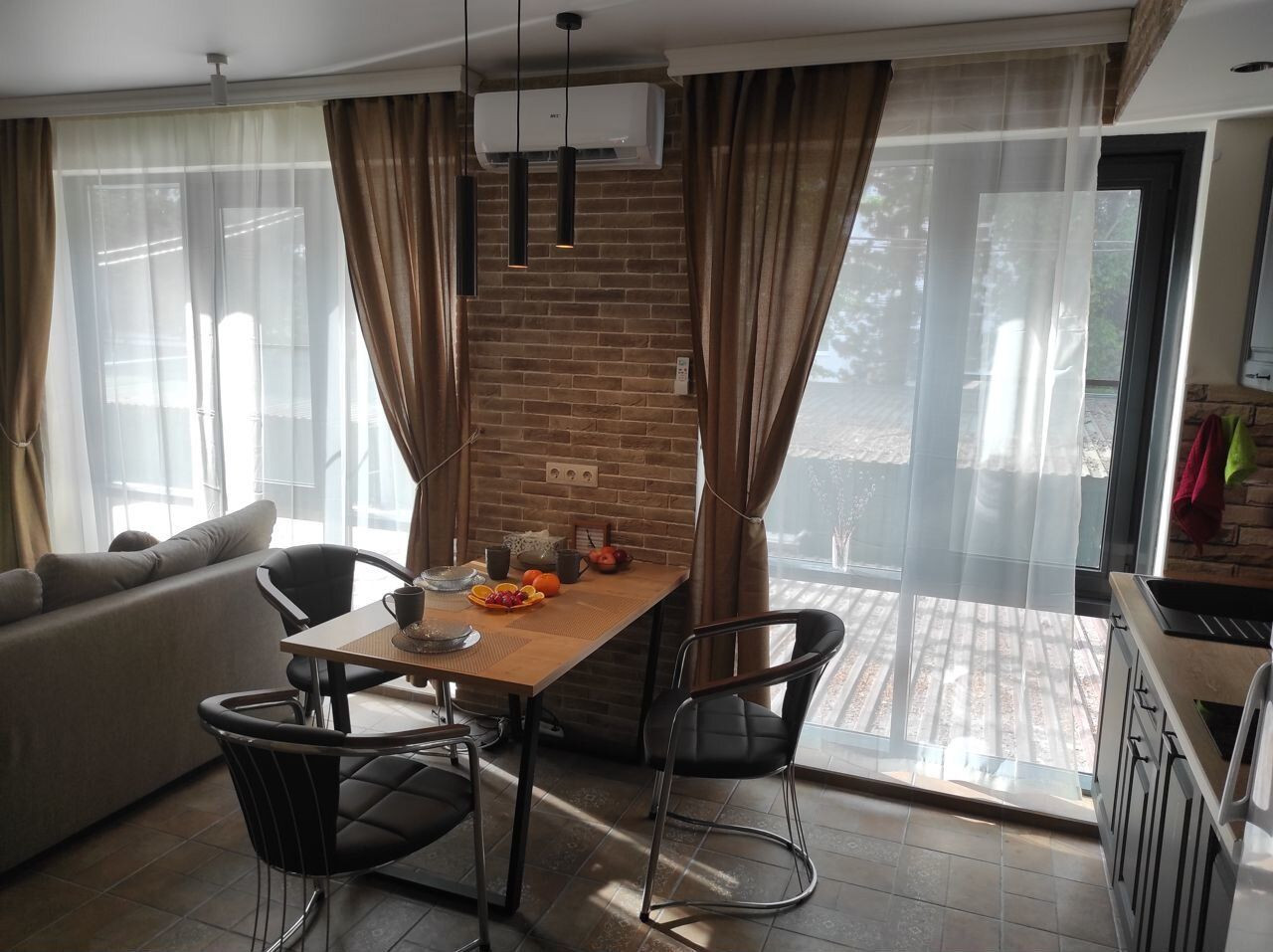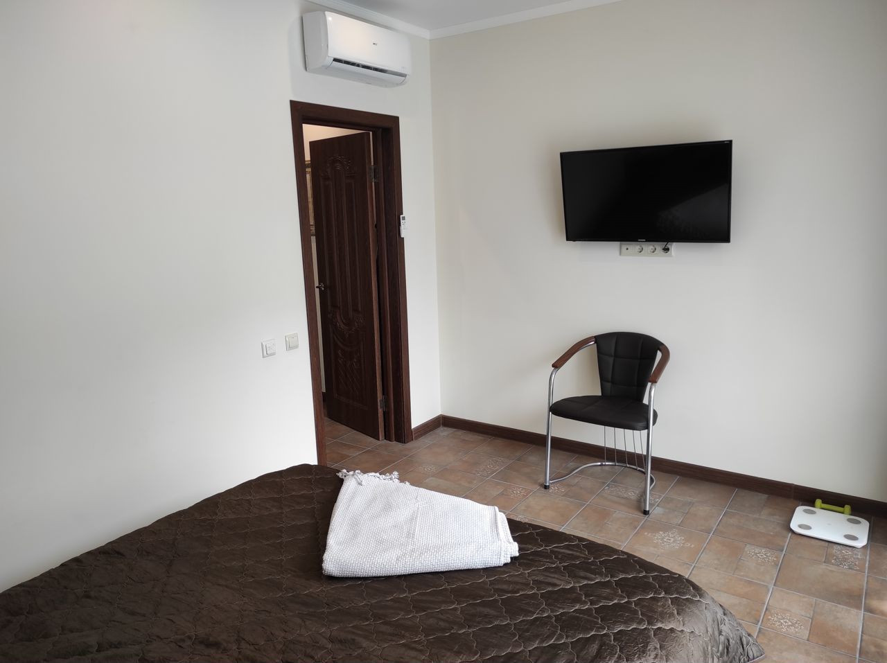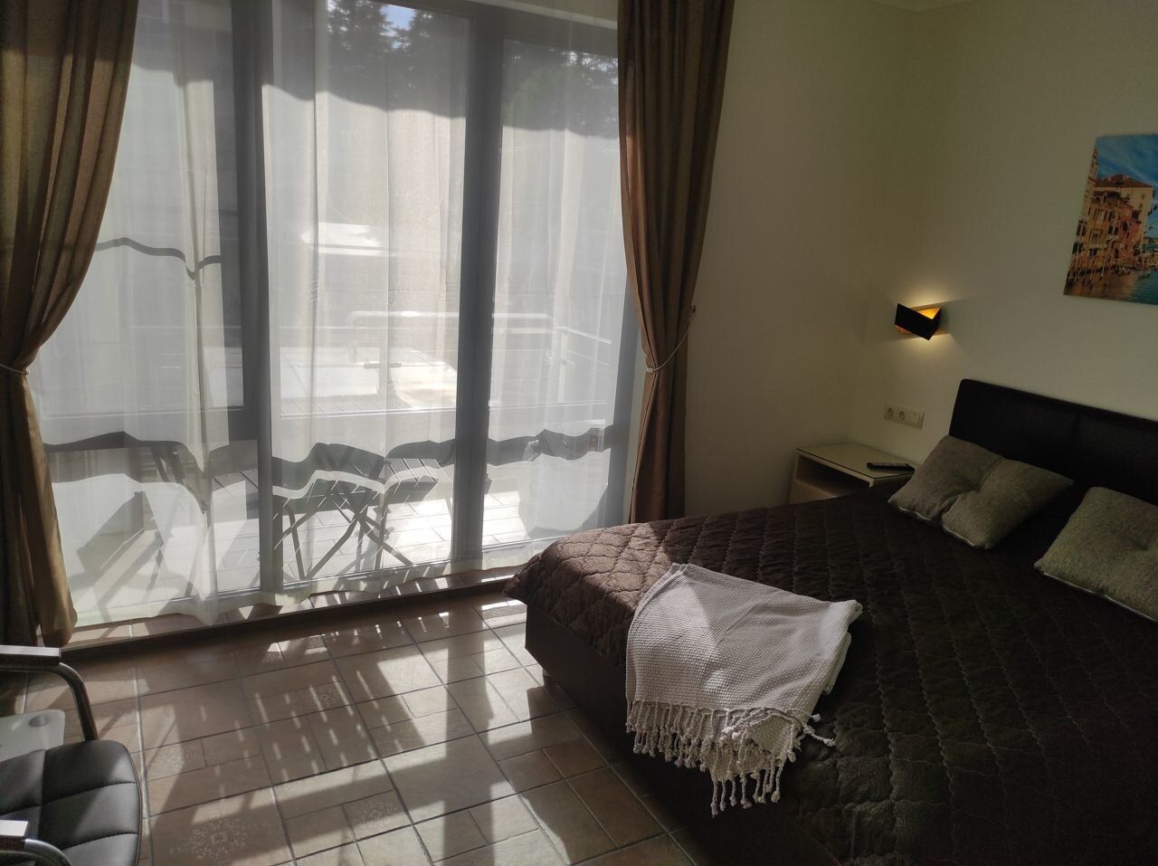 Пол в апартаментах покрыт итальянской плиткой, имитирующей старинную итальянскую плитку, а тёплый пол разделён на четыре независимые зоны. На балконе установлены удобные кресла и столик, а ванная комната оснащена полноценной душевой зоной, стиральной машиной и феном. Окна выходят в тихую зелёную зону.