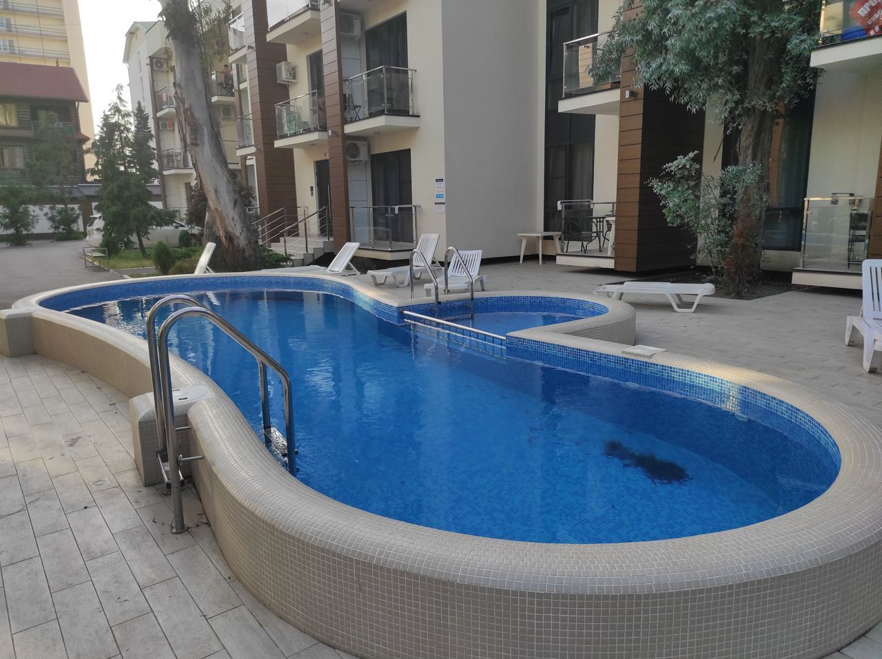 На территории комплекса Мадрид Парк 2 есть современная детская площадка, бесплатный бассейн и круглосуточная охрана. В пяти минутах ходьбы расположена станция электропоездов «Ласточка», откуда можно быстро добраться до Имеретинской набережной, Олимпийского парка (10 минут), Красной Поляны (40 минут) и центрального Сочи (20 минут). Вся мебель и оборудование могут быть оставлены новому владельцу.