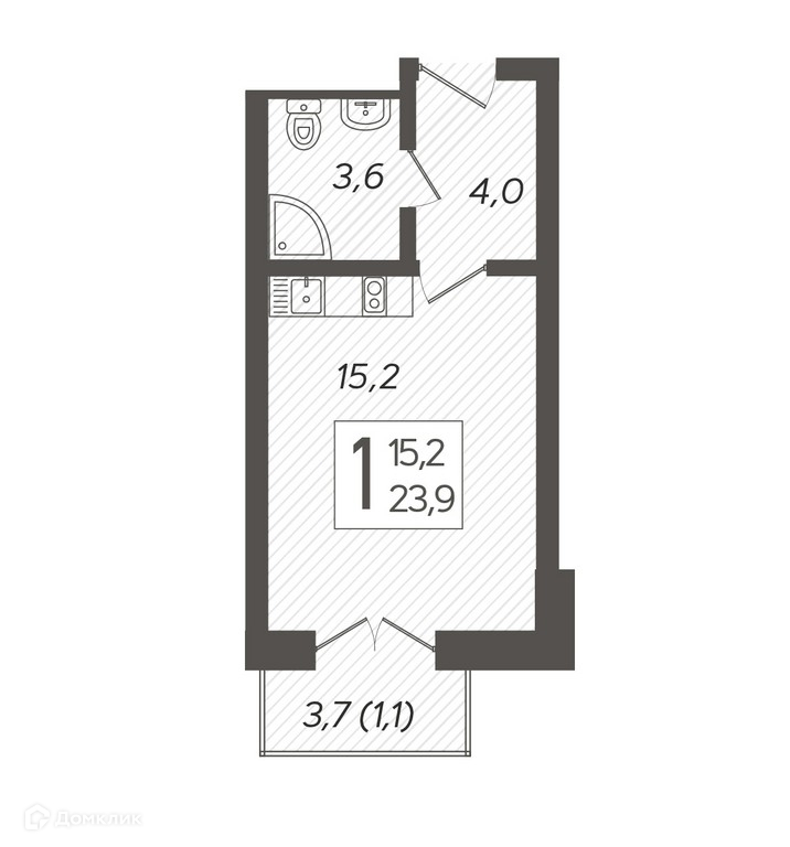 Общая площадь 23.9 м2