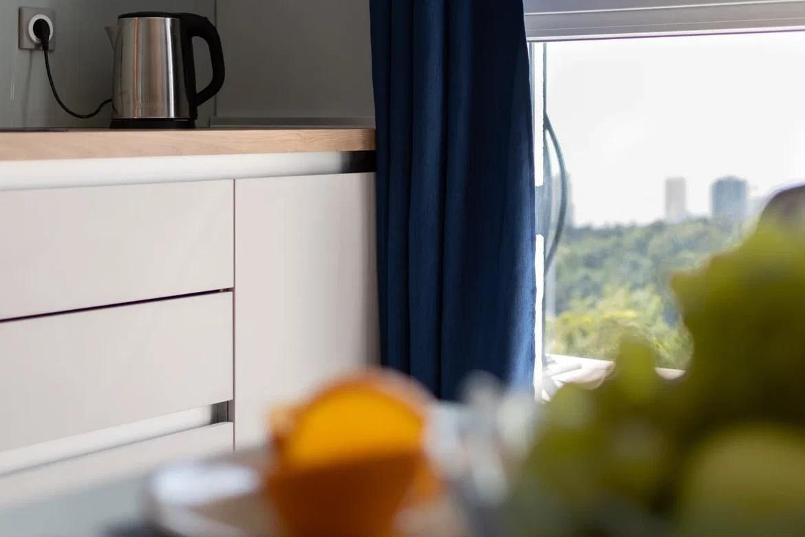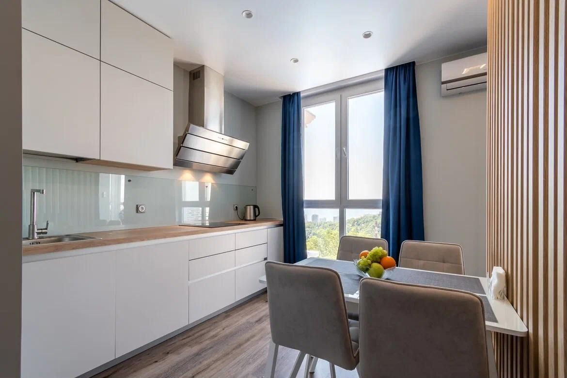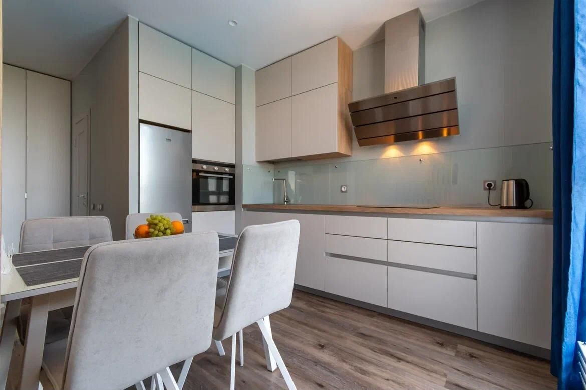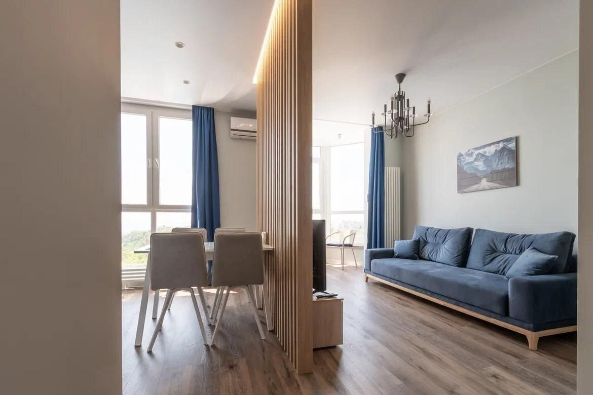 В этой квартире выполнен современный дизайнерский ремонт с использованием высококачественных материалов. Во дворе жилого комплекса вы найдёте всё необходимое для комфортного проживания: подогреваемый бассейн, ресторан, фитнес-центр, зону для барбекю, детские и спортивные площадки.
