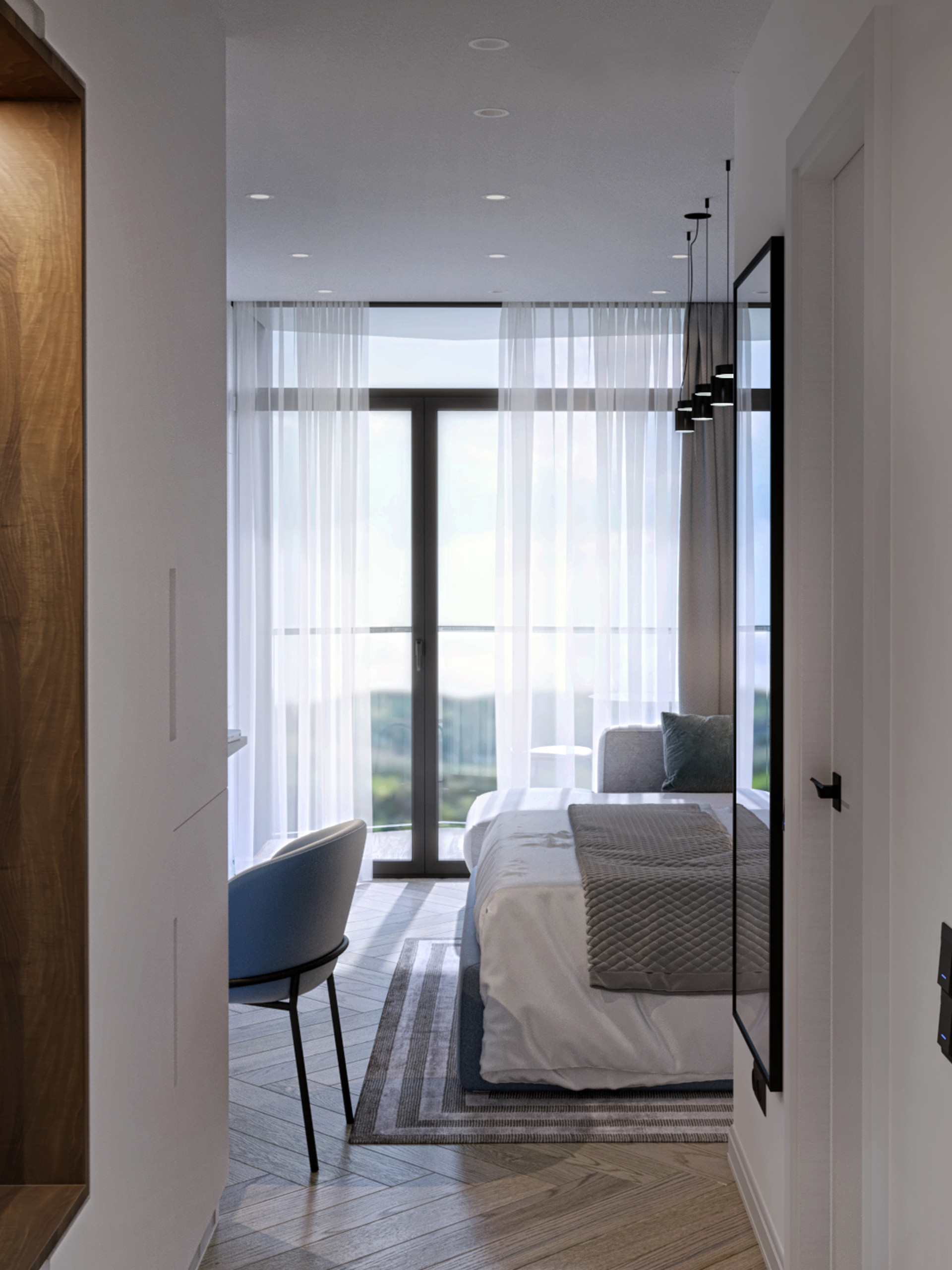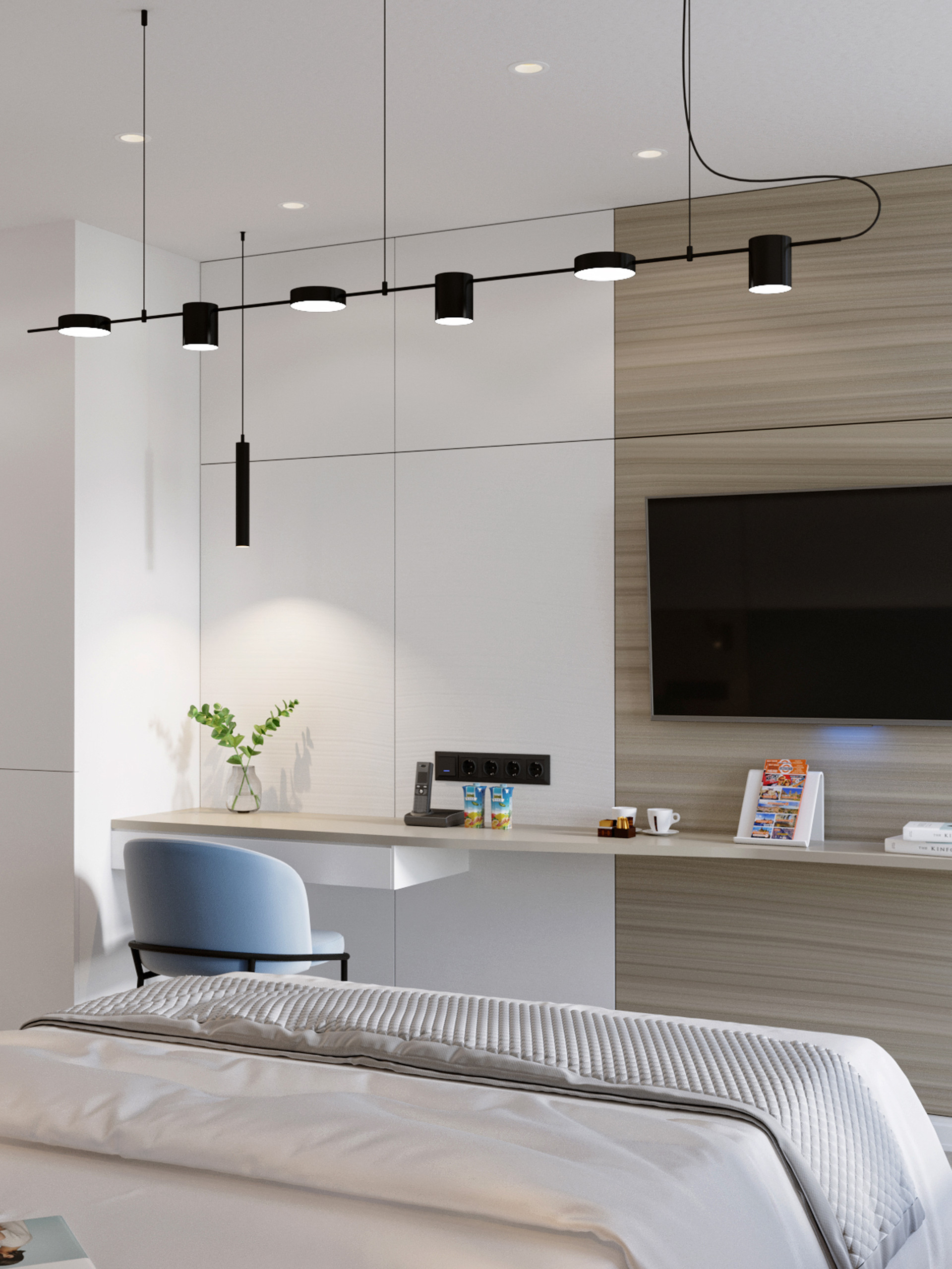В номере стильный дизайнерский ремонт. Управление отельным оператором.
