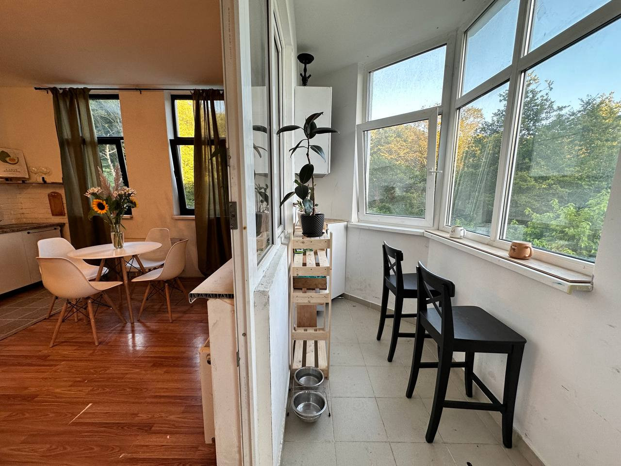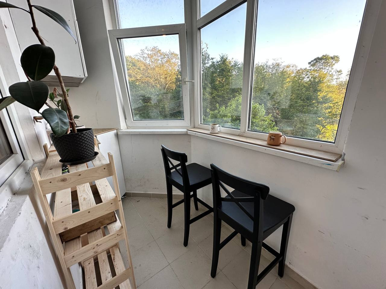 В квартире панорамное остекление, приятный вид на зелень.